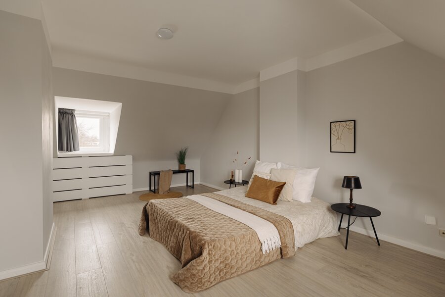Riante overloop met bergruimte. Royale slaapkamer met dakkapellen aan zowel de voor- als achterzijde en knieschotten met extra bergruimte. Het realiseren van een extra slaapkamer behoort hier tot de mogelijkheden. Tevens bevindt zich op deze verdieping de tweede badkamer, voorzien van douche, (derde) toilet en wastafelmeubel.
