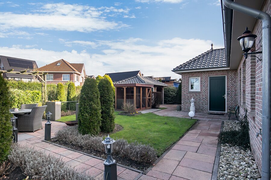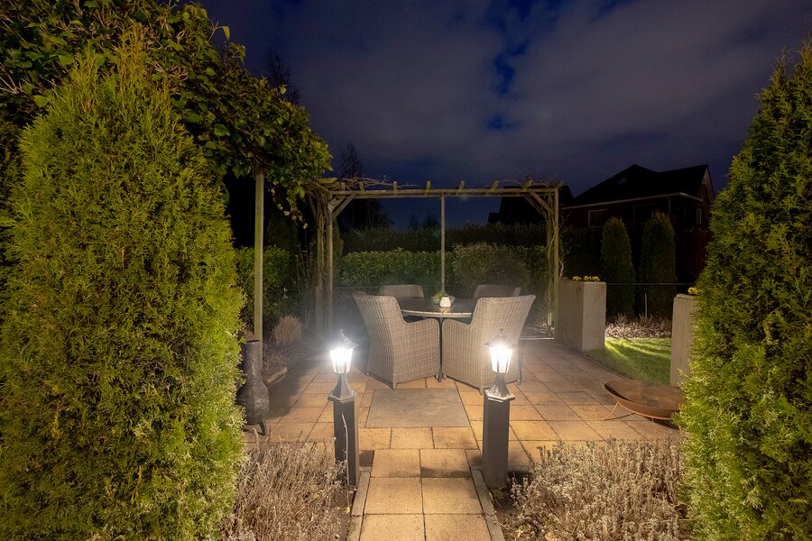 Ook in de fraai aangelegde tuin kun u heerlijk van het buitenleven genieten. Er zijn meerdere terrassen en vanaf de veranda kunt u genieten van fantastische zichtlijnen. U zult hier het 'vakantie-gevoel' thuis ervaren.