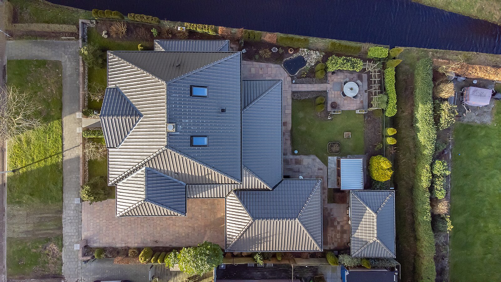- het dak is voorzien van geglazuurde dakpannen en pironen.