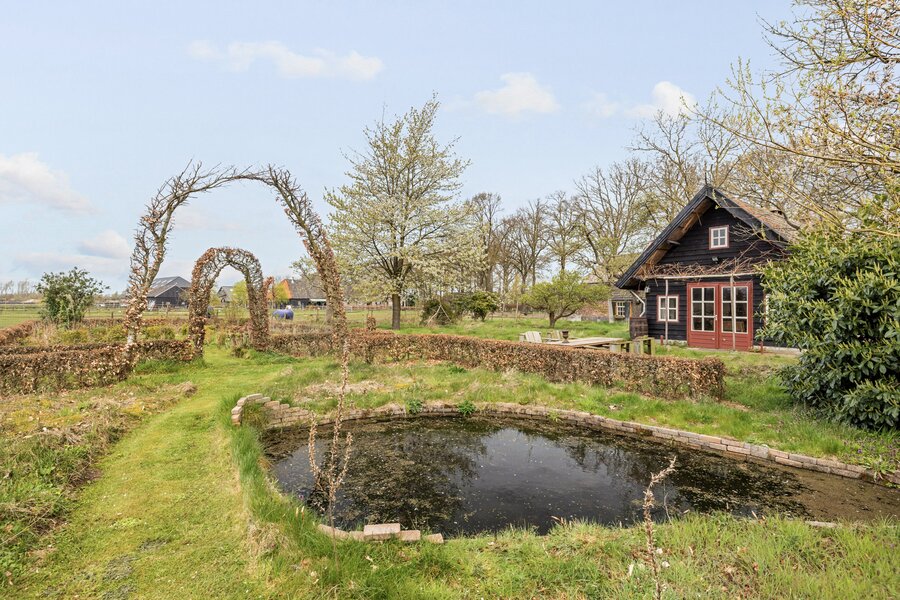 De circa 85 meter diepe en circa 42 meter brede tuin, onderdeel van een royaal perceel van circa 3.910 m², vormt een wereld op zich en is bepalend voor het unieke karakter van deze plek. Eerder dan een traditionele tuin betreft het een parkachtig grasland met gemaaide paden, waar natuur, ruimte en vrijheid centraal staan. Dit maakt het geheel niet alleen bijzonder sfeervol, maar ook uitermate geschikt voor het houden van (klein) dieren.