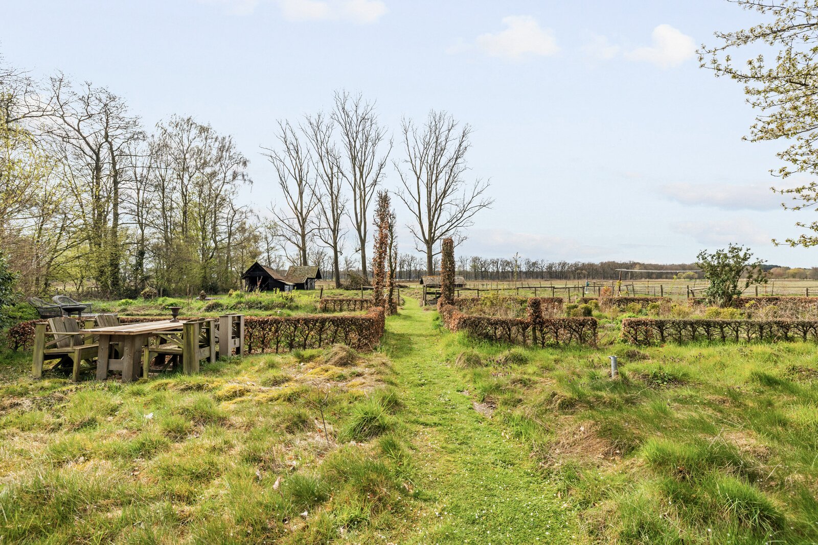 Verspreid over het perceel bevinden zich diverse bijgebouwen, waaronder een sfeervolle buitenkamer met haardpartij en een paardenstal, wat bijdraagt aan de veelzijdigheid en het landelijke karakter van het geheel. De tuin biedt volop privacy en ruimte voor uiteenlopende invullingen, zoals een moestuin, meerdere zon- en schaduwterrassen of het realiseren van aanvullende voorzieningen geheel naar eigen wens.