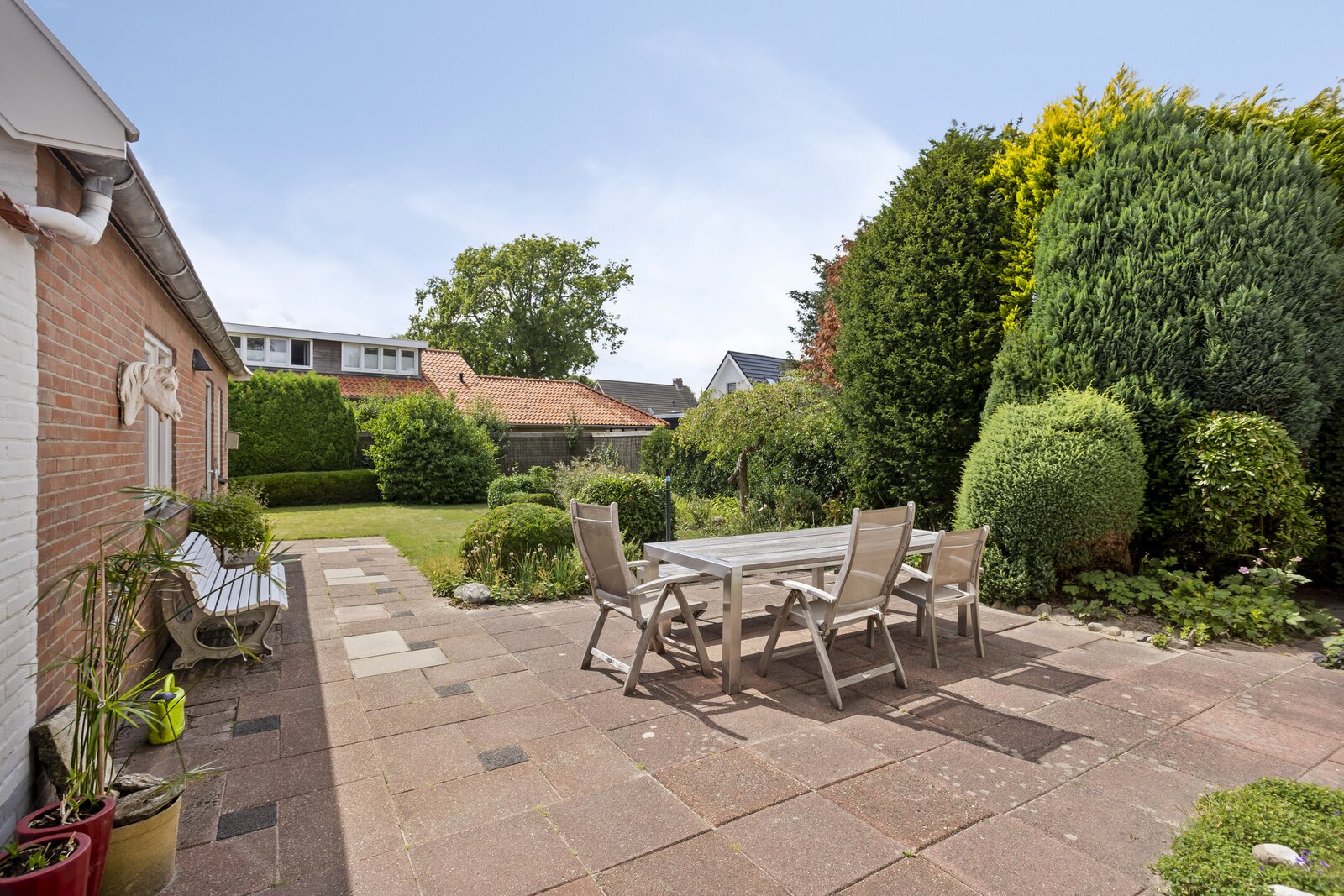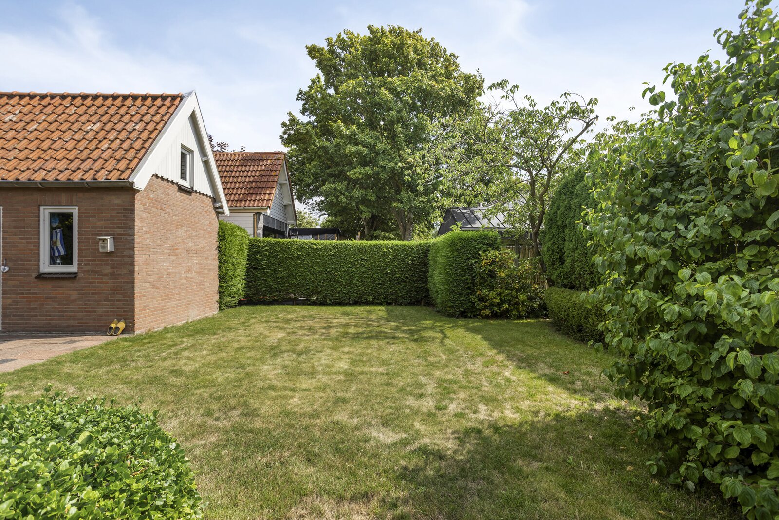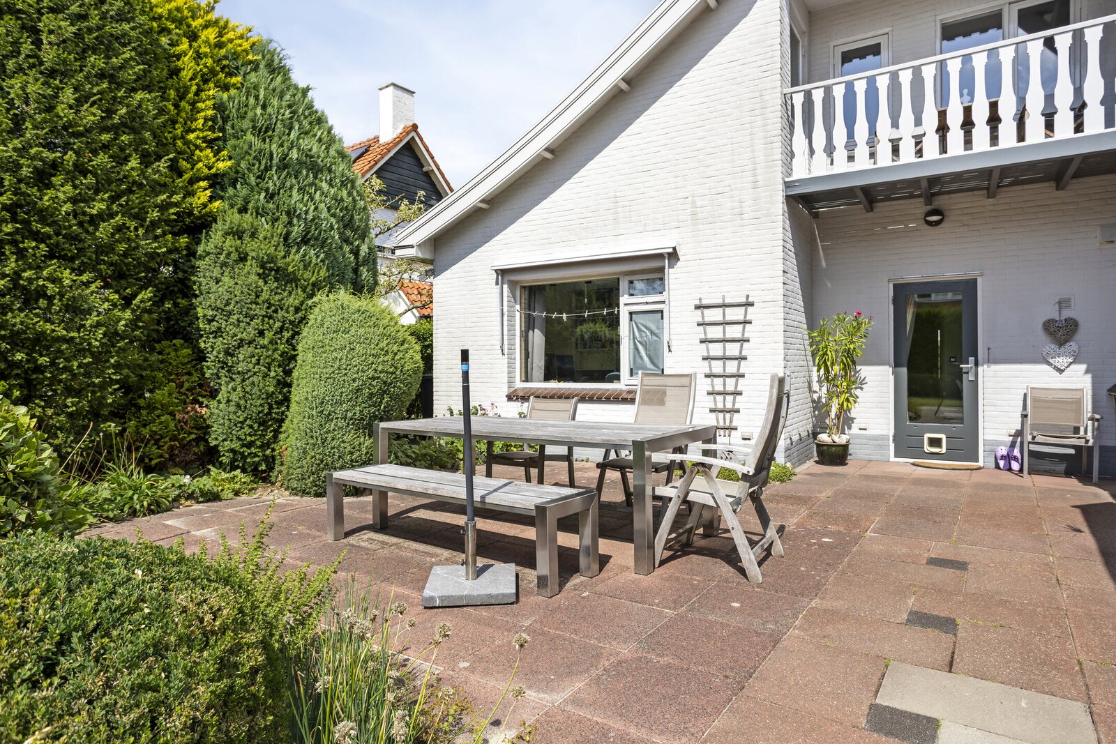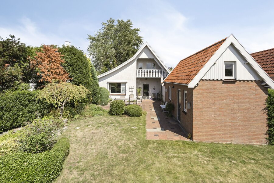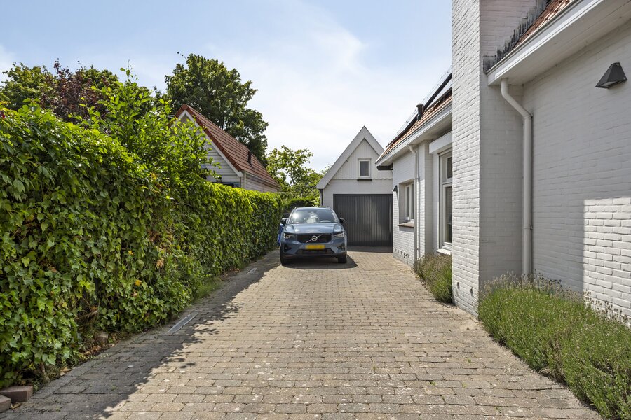 Naast de woning staat een vrijstaande stenen garage met een eigen bergzolder. Deze biedt meer dan voldoende ruimte voor uw auto, fietsen, strandspullen en overige opslag.
