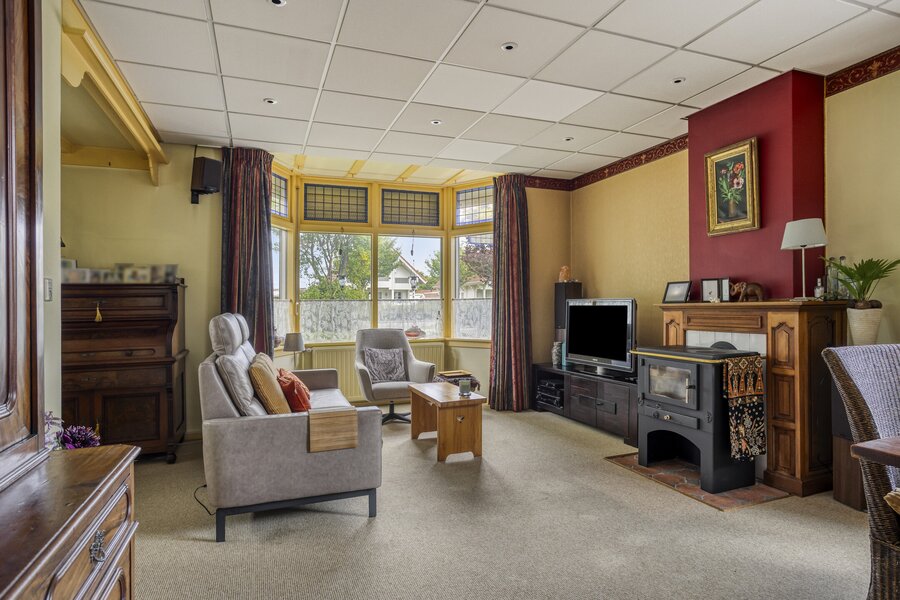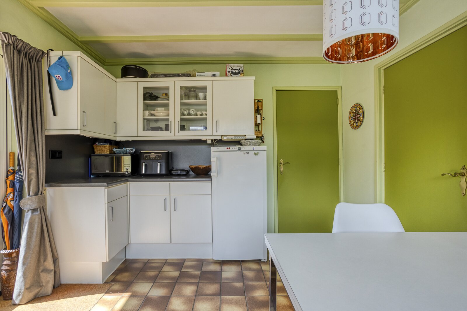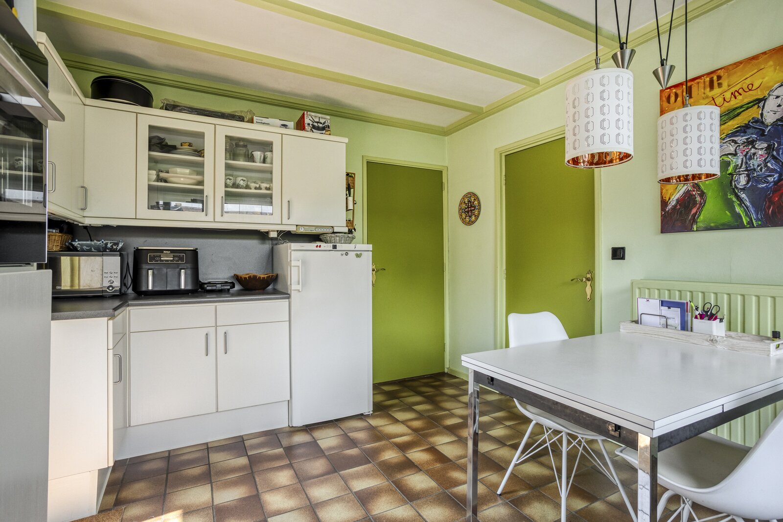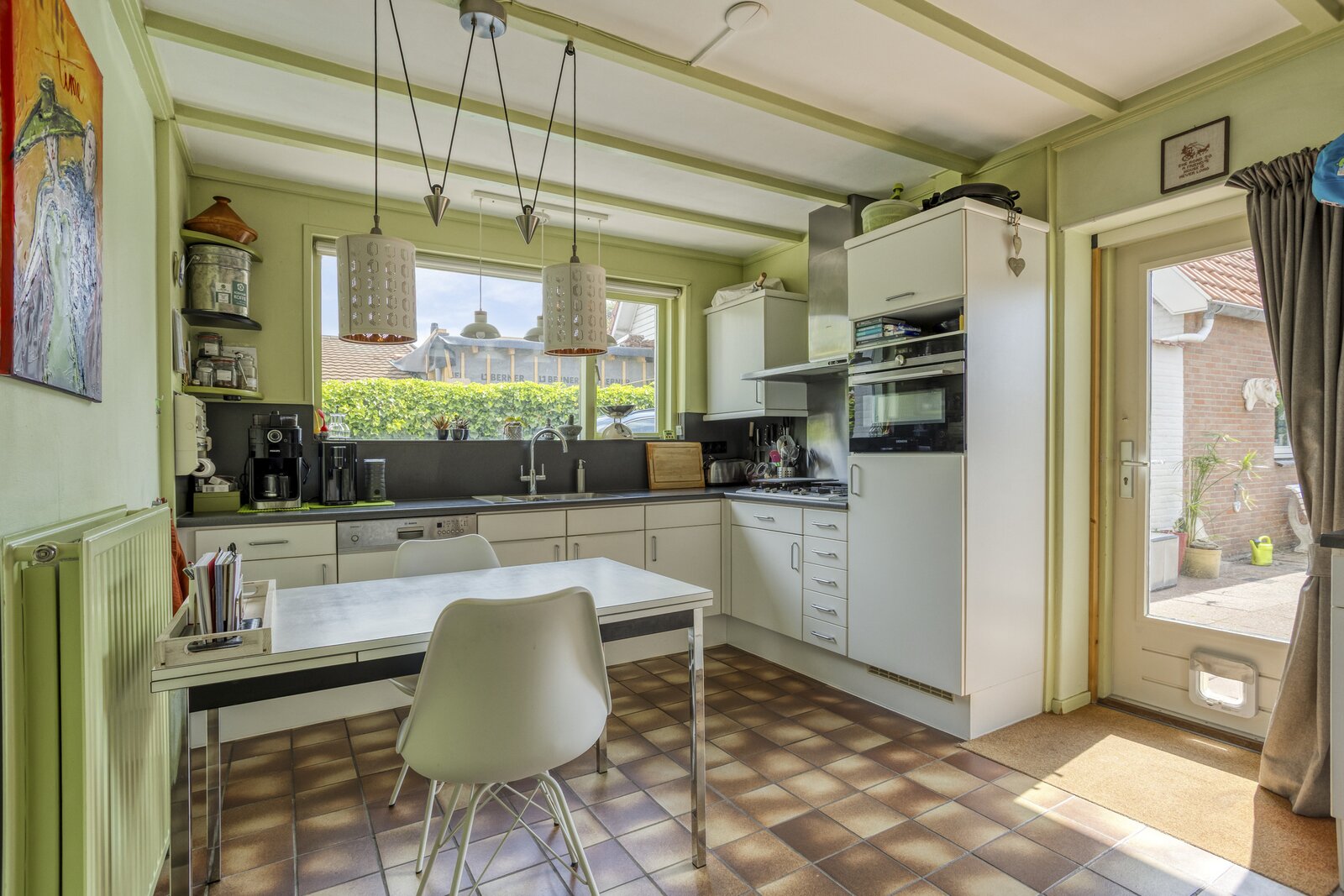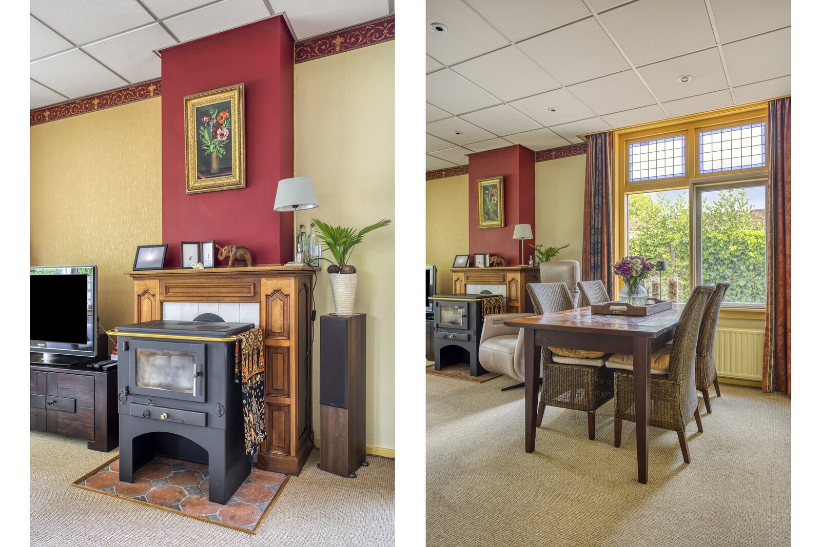 De keuken en de woonkamer staan met elkaar in verbinding en vormen samen een lichte en sfeervolle leefruimte. De erker aan de voorzijde zorgt voor extra lichtinval en een karakteristieke uitstraling.