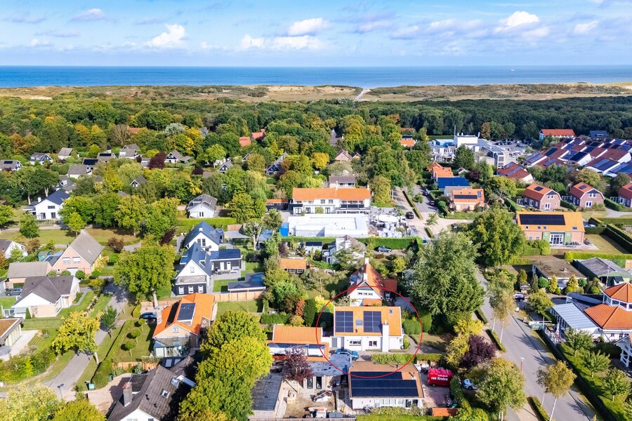 Zodra u het perceel van 684 m² betreedt, valt het authentieke karakter van de woning direct op. De bouwstijl uit de jaren dertig is duidelijk zichtbaar in onder andere de kenmerkende erker en de elegante daklijnen. Deze historische charme wordt gecombineerd met hedendaags comfort en de luxe van wonen op slechts 300 meter van de duinovergang naar het brede Noordzeestrand. Ook het uitgestrekte natuurgebied De Mantelinge – een van de mooiste en oudste bossen van Walcheren – ligt op steenworp afstand. Hier woont u letterlijk aan de rand van zee en bos.