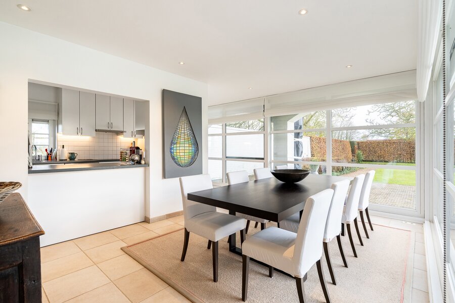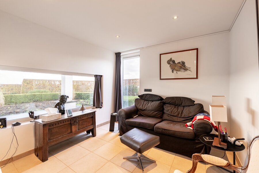 Bij het binnenkomen wordt u verwelkomd in een royale inkomhal met gastentoilet en vestiaire, die meteen de toon zet voor de rest van de woning. De ruime leef- en eetruimte sluit naadloos aan op de volledig uitgeruste open keuken, voorzien van alle comfort en ontworpen voor wie graag stijlvol leeft en kookt. Dankzij de grote raampartijen geniet u doorheen de hele dag van een overvloed aan natuurlijk licht. Een extra praktische berging biedt bijkomende opbergruimte. Het gelijkvloers beschikt daarnaast over een extra leefruimte, ideaal voor ontspanning of als aparte tv-room.
