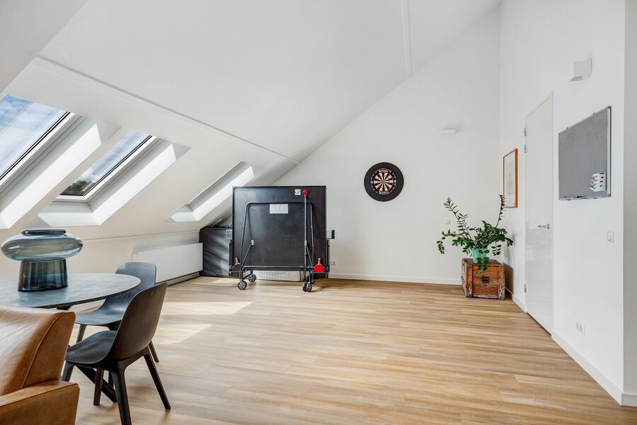 Deze verdieping beschikt over een ruime, multifunctionele kamer met grote dakramen die zorgen voor veel lichtinval. De ruimte is ideaal te gebruiken als kantoor, speelkamer, hobbyruimte of tv-kamer. Daarnaast bestaat de mogelijkheid om hier 2 slaapkamers te realiseren. Ook het creëren van een praktische bergzolder behoort eenvoudig tot de mogelijkheden.