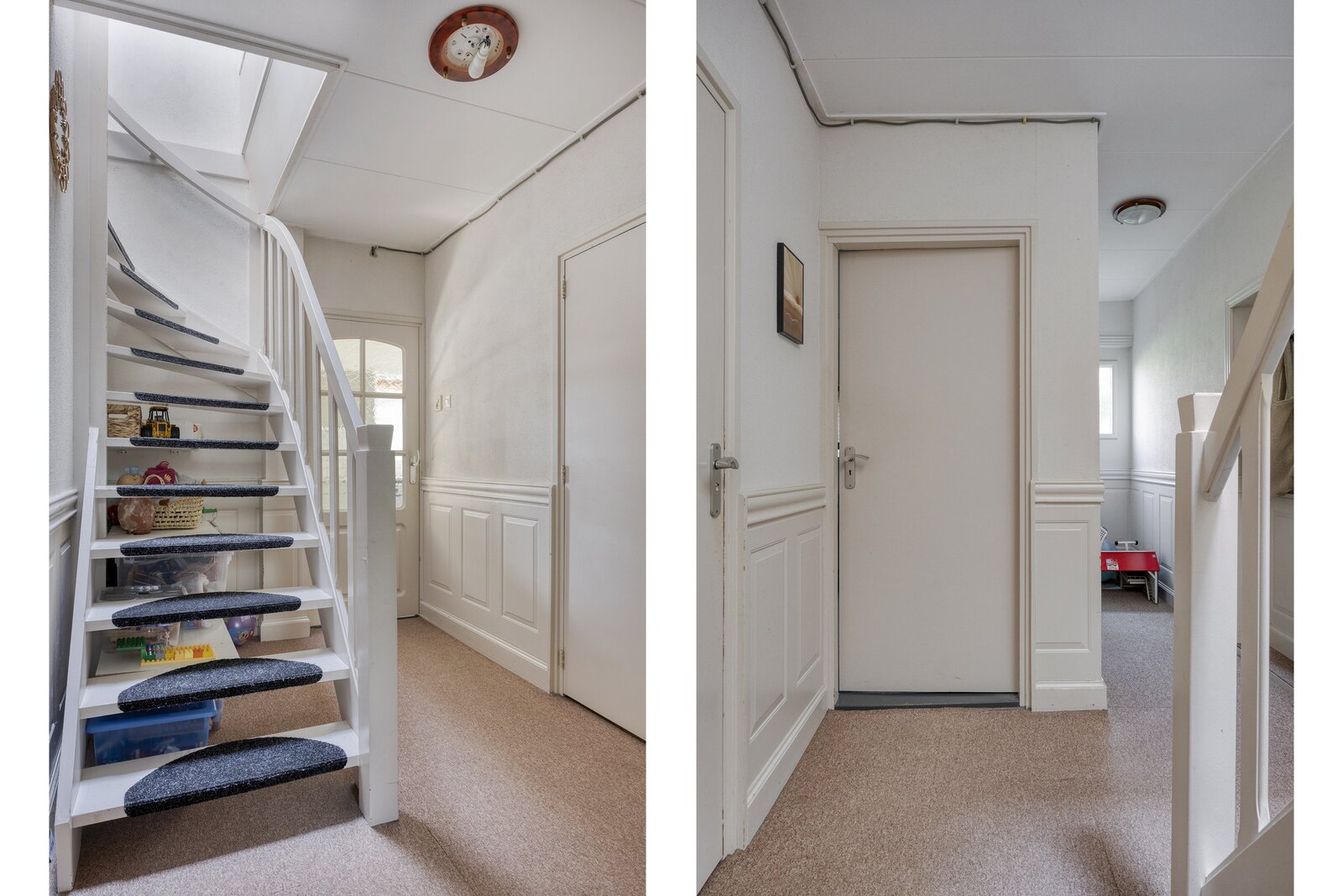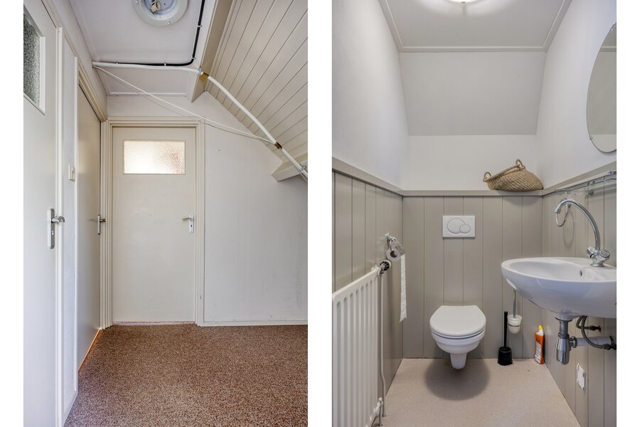 Begane grond: entree met garderobe hoek, meterkast, modern toilet en trappenhuis naar de eerste verdieping en het souterrain.