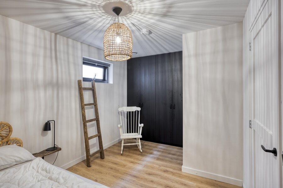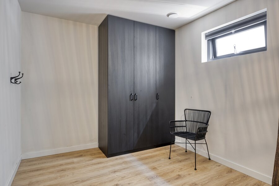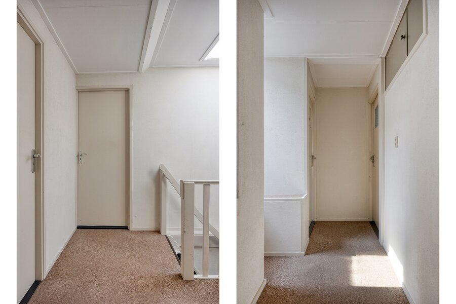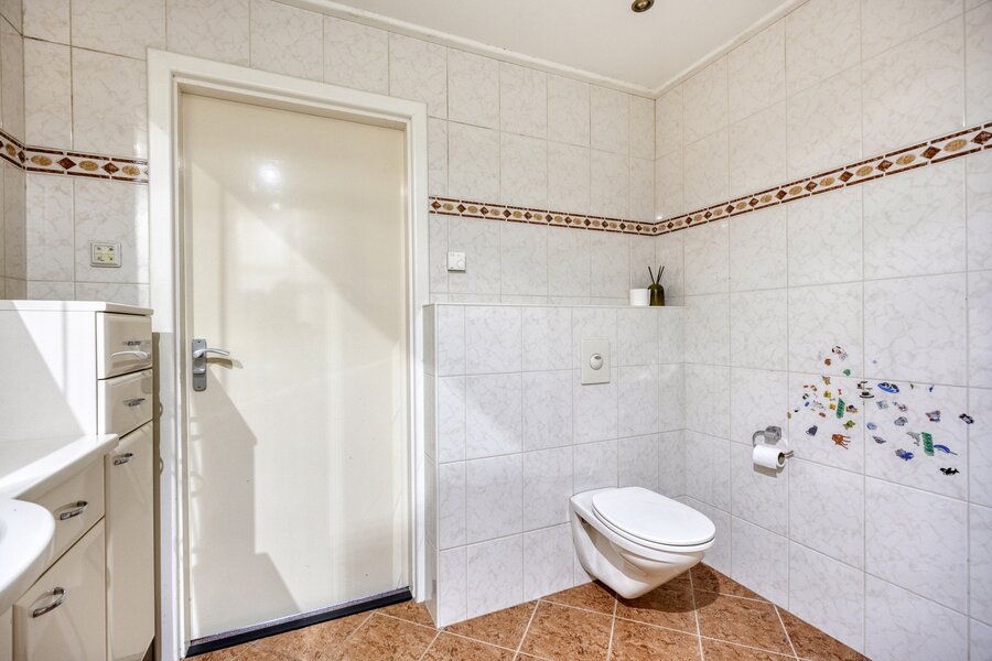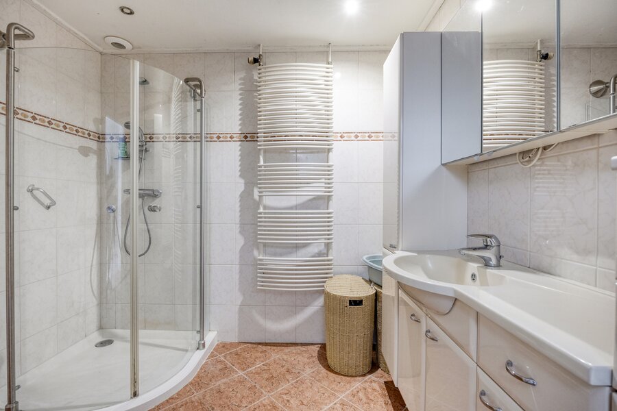 Souterrain: overloop met stookruimte (warmtepomp). Vanuit de overloop zijn de 3e en 4e slaapkamer bereikbaar met daglicht via koekoeksraam en de 2e moderne badkamer eveneens met inloopdouche, toilet en wastafelmeubel.