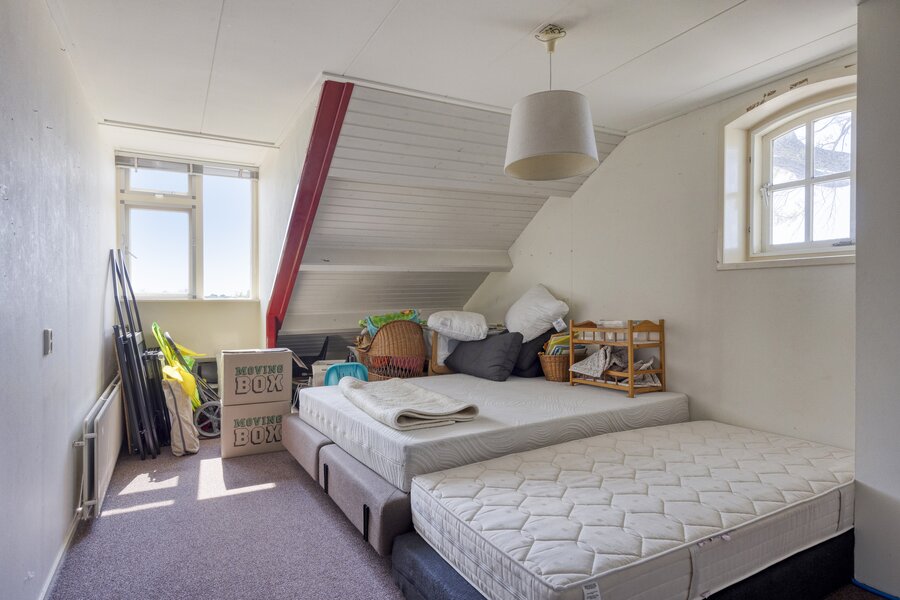 Eerste verdieping: ruime overloop (dankzij meerdere dakkapellen) met toegang tot maar liefst zes slaapkamers, allen extra ruim door dakkapellen of dakramen. Verder vindt u hier een separaat toilet.