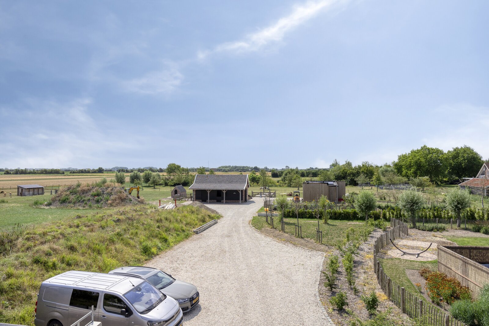 Er is meer dan voldoende parkeergelegenheid voor meerdere auto's én genoeg grond en weide voor bijvoorbeeld meerdere paarden of alpaca’s.