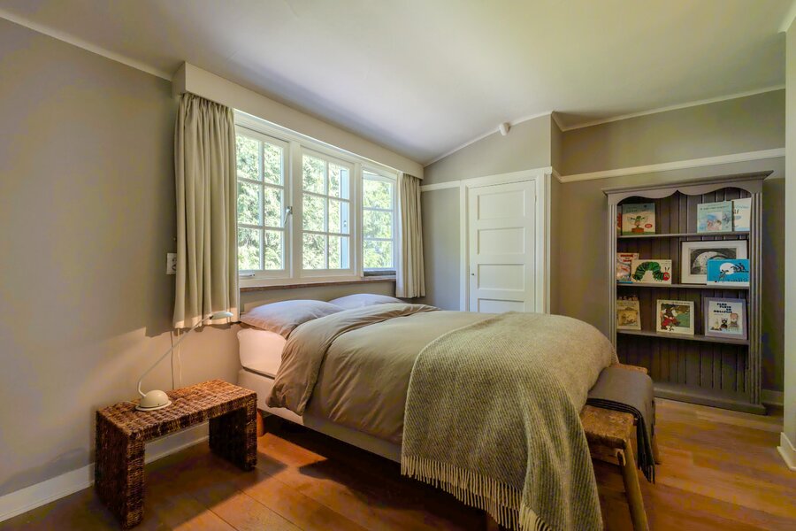 Houten, openslaande deuren geven toegang tot het terras en de achtertuin.