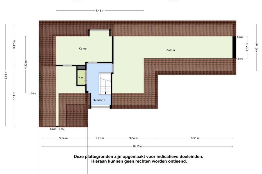De tweede verdieping is via een vaste trapopgang bereikbaar.