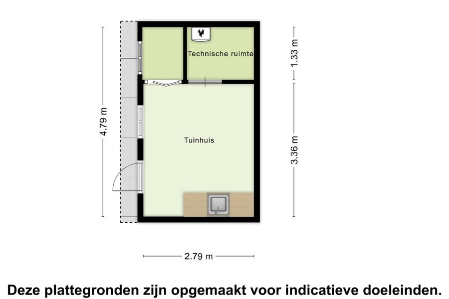 Er is een zwembad met buitendouche en een praktisch houten tuinhuis voorzien van een kleedruimte en een technische ruimte met opstelling van de c.v.-ketel en installatie voor het zwembad. Tevens een klein keukenblok met spoelbak en koelkast.