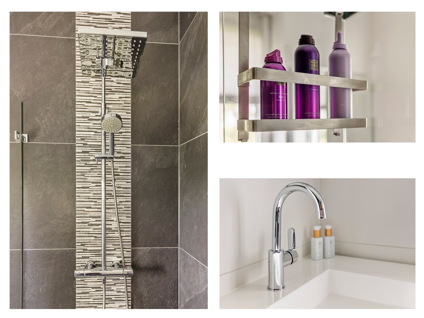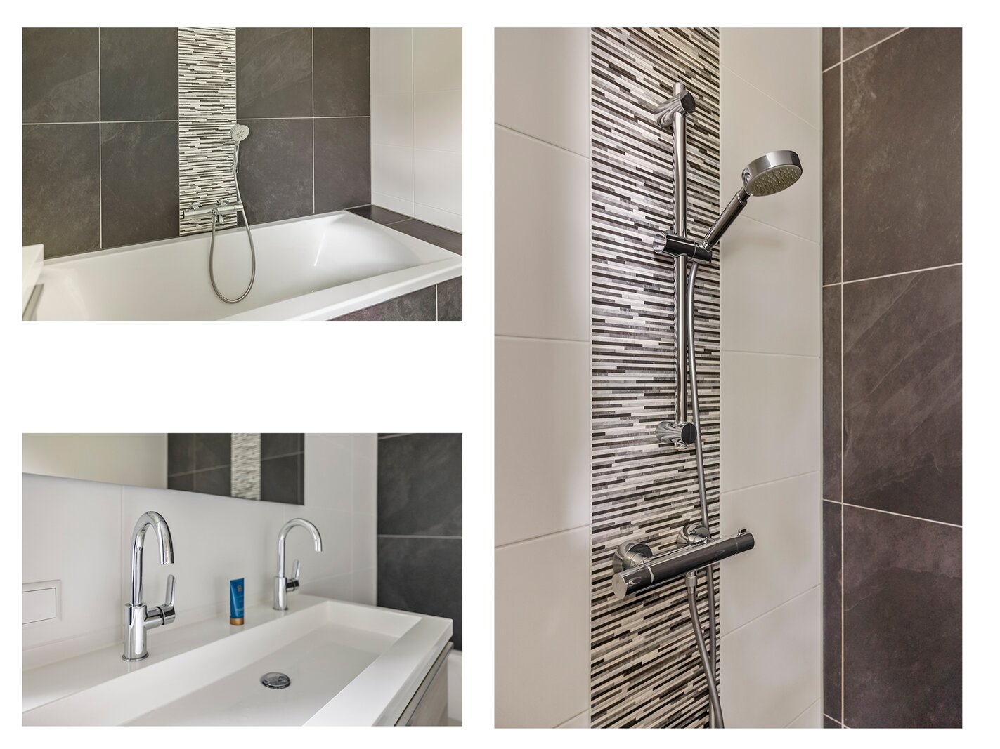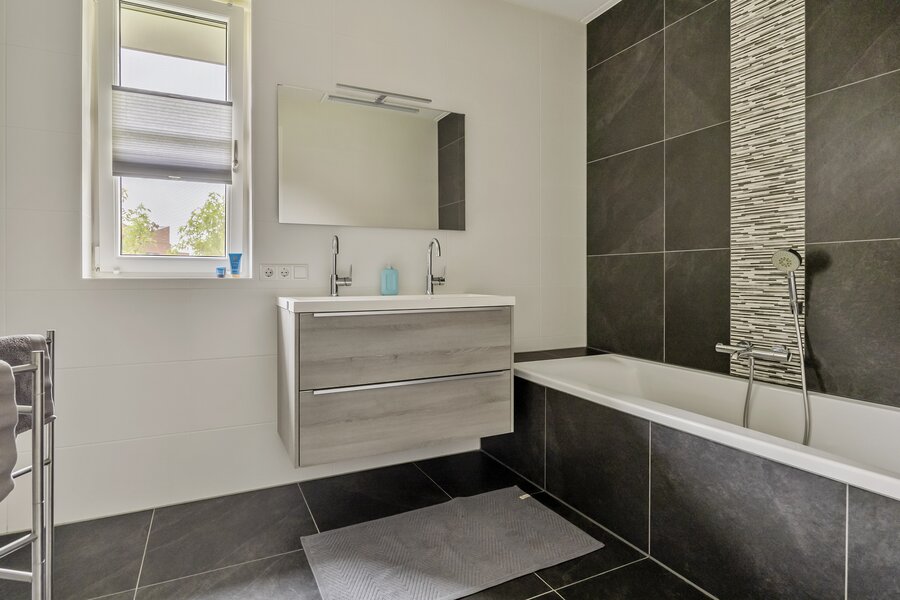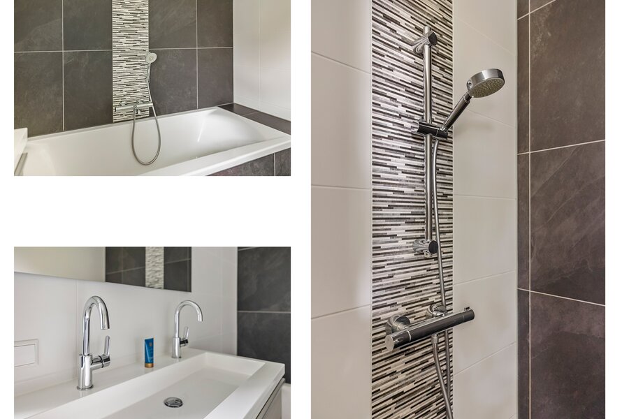 Op de eerste verdieping bevinden zich drie ruime slaapkamers, waaronder de master bedroom. Deze kamer is voorzien van een eigen open badkamer met inloopdouche en wastafel – ideaal voor extra comfort en privacy. Daarnaast is er op deze verdieping een tweede, luxe badkamer. Deze is voorzien van een ligbad, inloopdouche en dubbele wastafel, en bevindt zich centraal op de verdieping, zodat de andere slaapkamers hier ook gemakkelijk gebruik van kunnen maken. Verder vind je op deze etage een apart toilet en een ruime overloop.