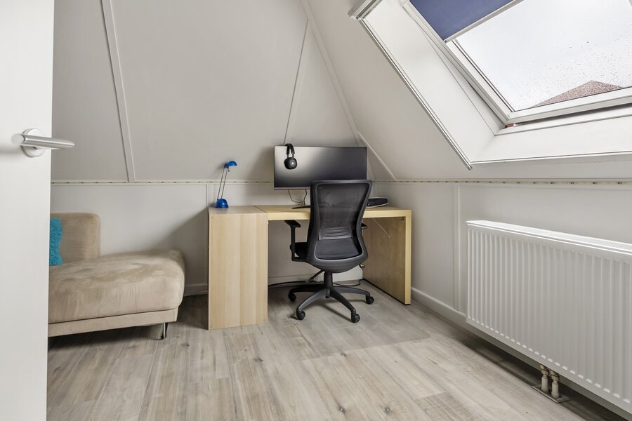 De tweede verdieping biedt nog eens twee fijne slaapkamers. Deze zijn perfect in te richten als kinderkamers, logeerkamers, thuiskantoor of hobbyruimte. Dankzij de rechte gevels en het goede afwerkingsniveau voelt ook deze verdieping comfortabel en ruim aan.