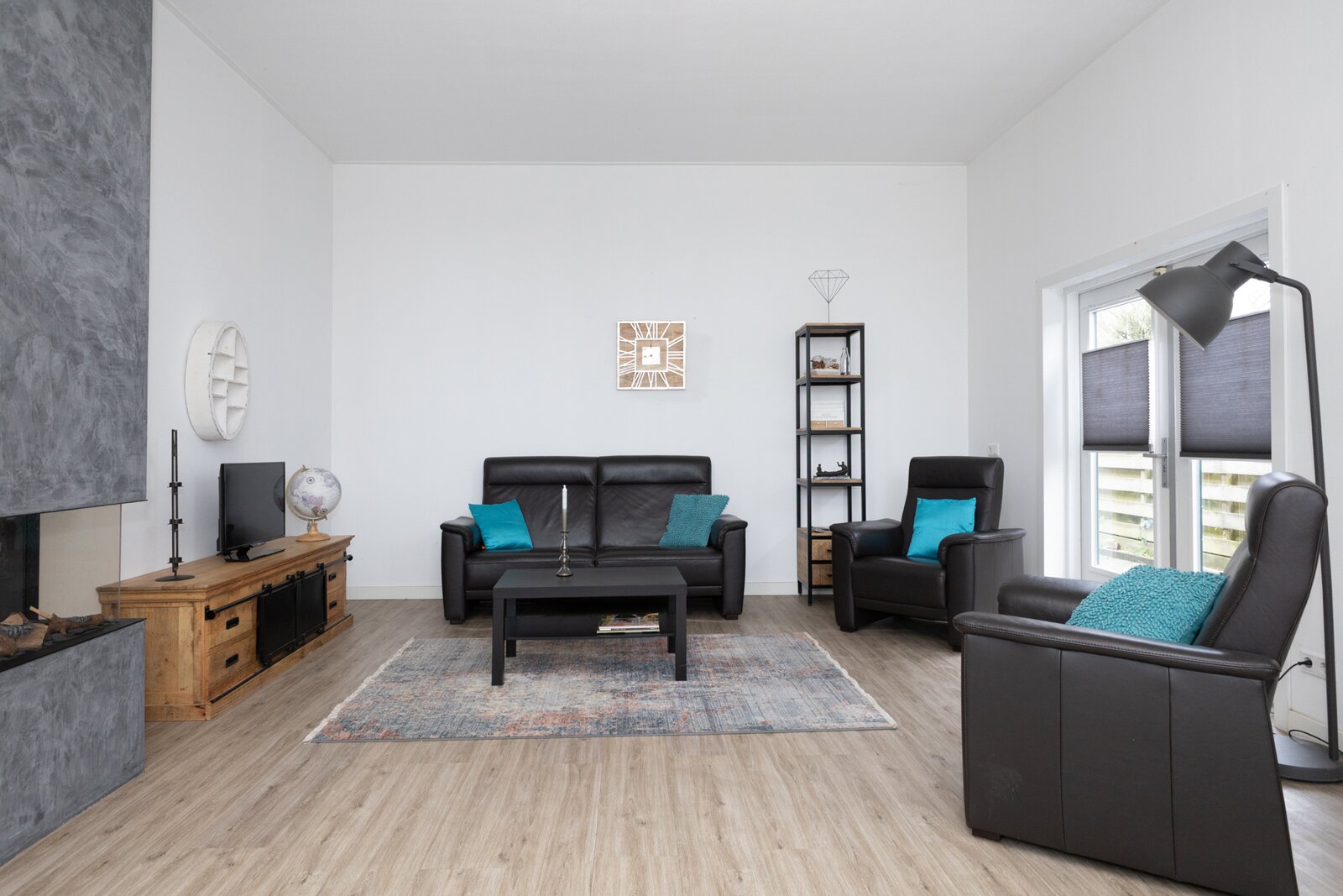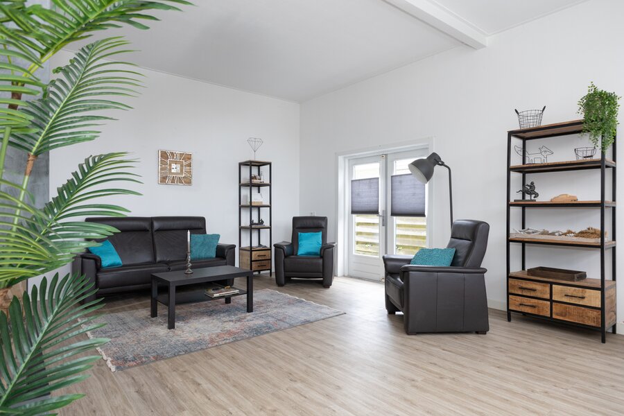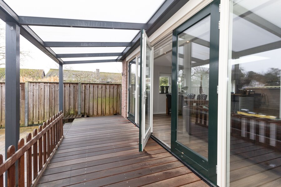 Eigen entree via de linkerkant van de woning, hal met trapopgang, meterkast en extra bergruimte. Vanuit de hal kom je in de slaapkamer op de begane grond, heel praktisch, maar ook levensloopbestendig. Ook de badkamer vind je op de begane grond, deze is voorzien van whirlpool, inloopdouche, wastafel met spiegelkast en een toilet. Je komt binnen in de moderne ruime keuken, voorzien van alle inbouwapparatuur en een sfeervolle lichte woonkamer met openslaande deuren naar de veranda. Dit is een fijne plek om buiten te zitten, van vroeg in het voorjaar tot laat in het najaar. De tuin is verder netjes aangelegd en onderhouden, groot genoeg, met nog twee schuren en een kleine overkapping.