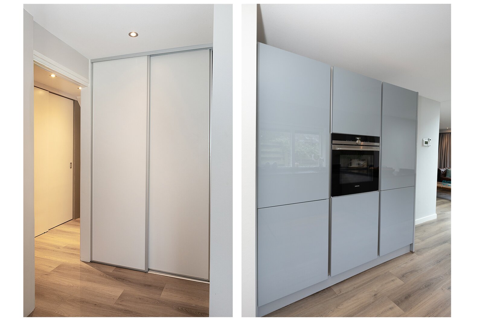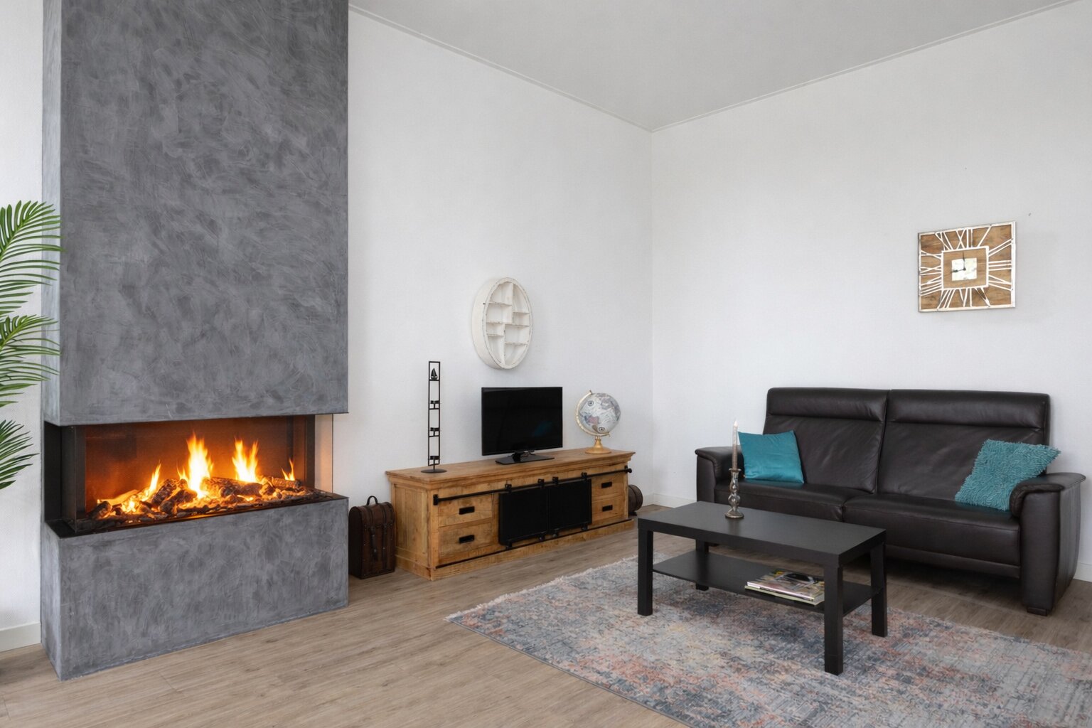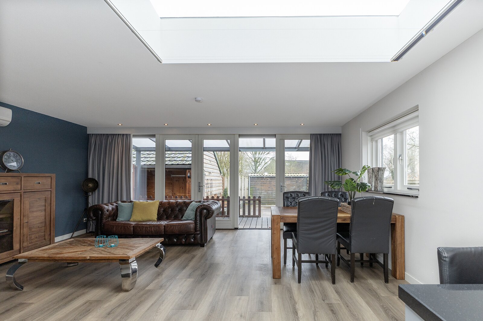 Je komt binnen in de riante keuken, een luxe keuken voorzien van kookeiland. Inclusief alle benodigde inbouwapparatuur, genoeg werkblad en kastruimte. De woonkamer is heerlijk ruim en er is ruimte voor een grote eettafel met stoelen en een zithoek voor de tv en de haard. Vanuit de woonkamer kan je via de openslaande deuren naar de tuin. De oprit rechts komt uit in jouw deel van de tuin en ook aan de achterzijde vind je echt een heerlijk zonnige tuin.