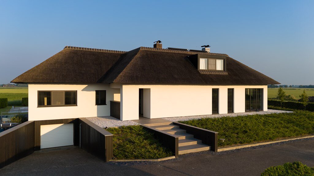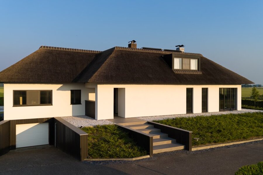 Stap binnen in deze betoverende en landelijke villa, volledig gerenoveerd met zorgvuldig gekozen materialen. De indrukwekkende eigenschappen van deze villa maken het tot een uniek toevluchtsoord. Gelegen te midden van de rustige Zeeuwse polders is deze woning een pareltje op steenworp afstand van de gezellige badplaats Cadzand. De gepleisterde buitenmuren zorgen voor een mooi en strak contrast tegenover het prachtige rieten dak, die de charme van de woning laat zien.