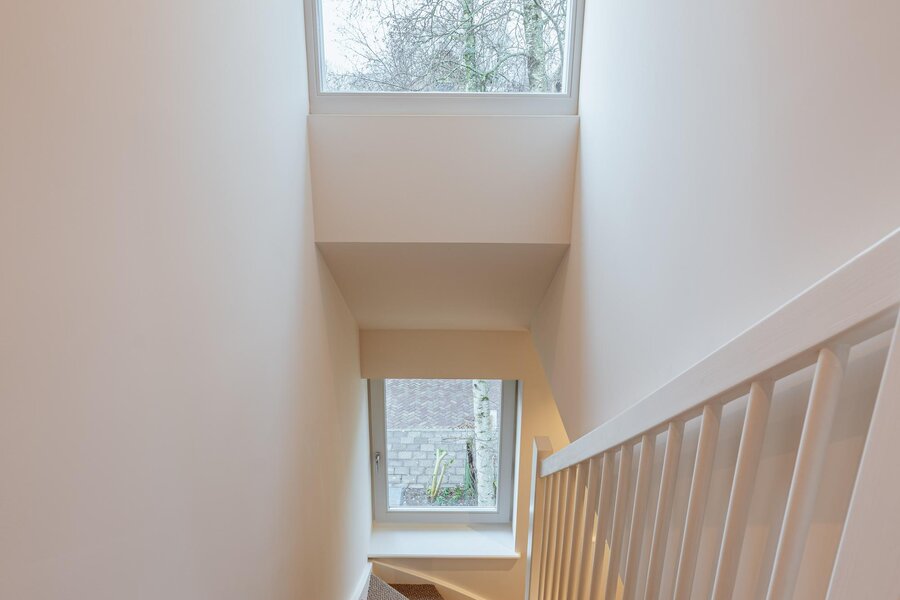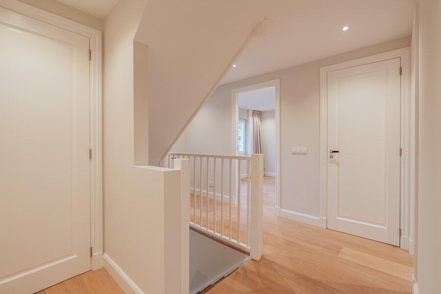 De tweede verdieping biedt twee extra slaapkamers en een vierde badkamer, waardoor de woning uitstekend geschikt is voor grotere gezinnen of bewoners die behoefte hebben aan extra werk- of logeerruimte. Ook deze verdieping is volledig doorgetrokken in dezelfde hoogwaardige afwerking, wat zorgt voor een luxe en consistent geheel.