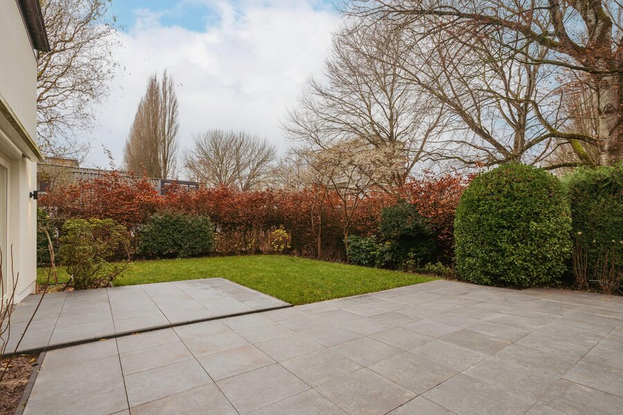 The property features a beautifully landscaped garden surrounding the house, with multiple terraces and plenty of privacy. A wonderful place to relax, dine outdoors or let children play freely. Private parking on the property further enhances the living comfort. Additionally, there is a spacious storage unit located in the garden.