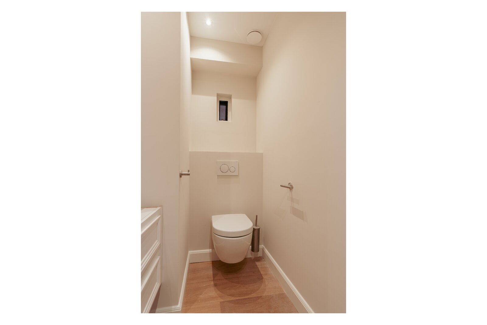 Through the well-maintained entrance you enter the spacious hallway with wardrobe and a stylishly finished separate toilet. The high-quality finish is immediately noticeable, featuring clean lines, calm colour schemes and a warm wooden floor.