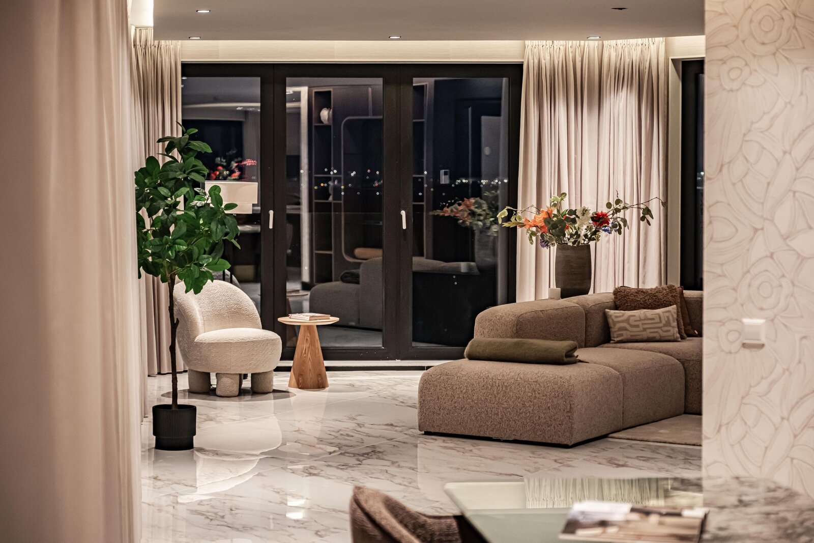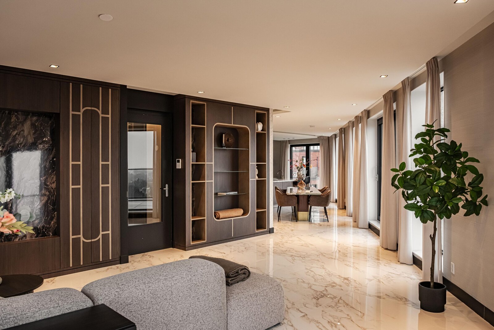 Het penthouse, oorspronkelijk bestaande uit 2 ruime appartementen, biedt een koper diverse mogelijkheden. Door de 2 entrees is het bijvoorbeeld zeer geschikt voor een au-pair aan huis dan wel voor inwonende familieleden. Voor de liefhebber van comfort en luxe biedt dit penthouse praktisch alles wat er van een appartement als dit verwacht mag worden. Zo zijn er verder 4 ruime en luxueus ingerichte slaapkamers, 2 luxe en compleet ingerichte badkamers, 2 separate wc’s (4 wc’s in totaal), een sportruimte met TV-spiegel wall, een extra slaap- of werkkamer dan wel kantoorruimte, 2 wasmachineruimten en een technische ruimte, een bijkeuken met pantry en zijn er veel mooie ingebouwde vaste maatwerkkasten. Het appartement is grotendeels afgewerkt met fraaie grote marmeren vloertegels.
