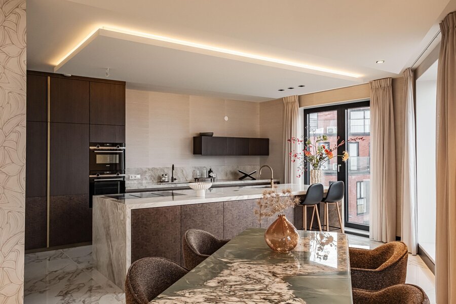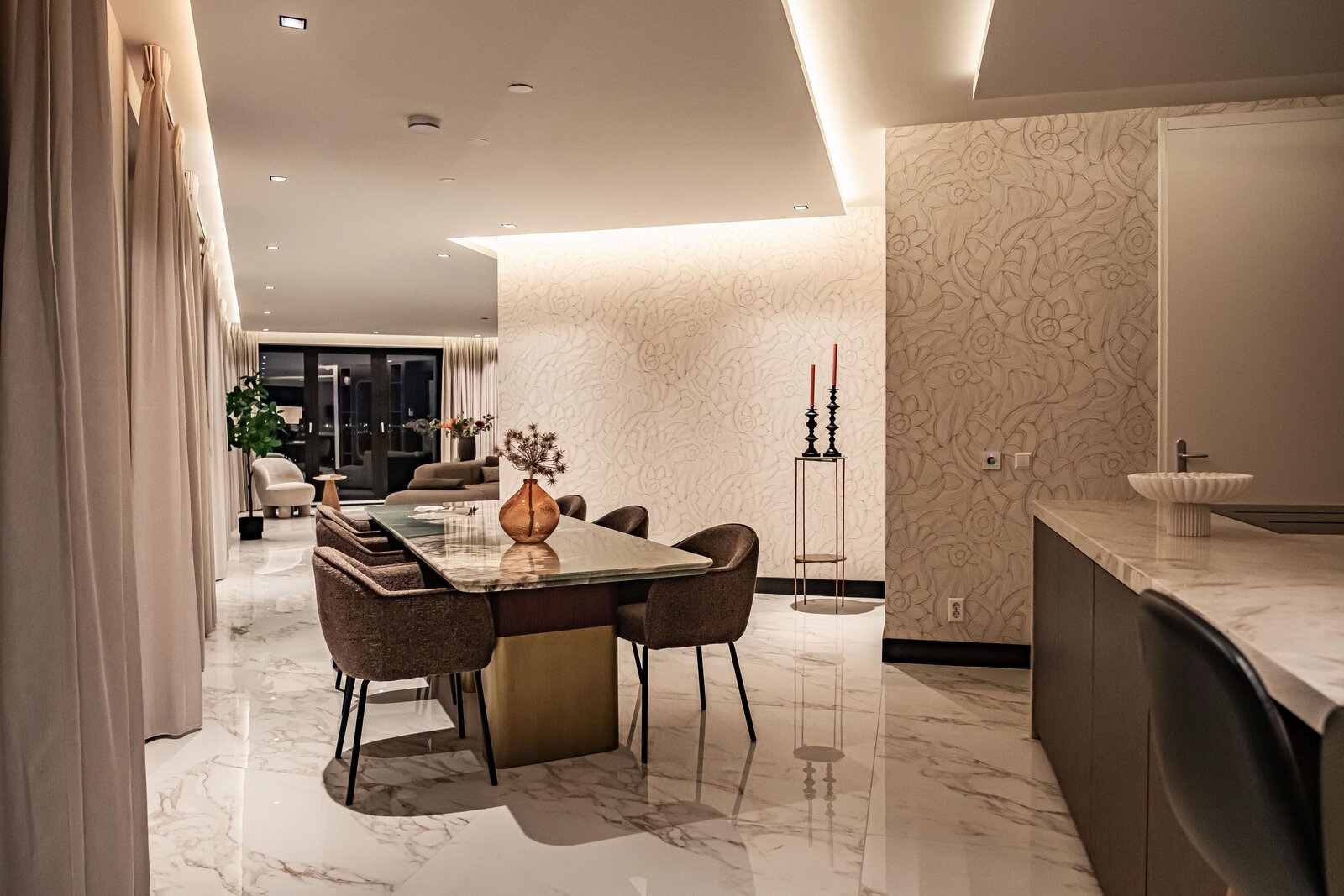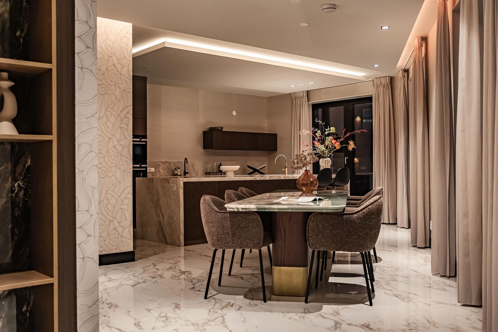 - Verlaagde plafonds voorzien van fraai lichtplan