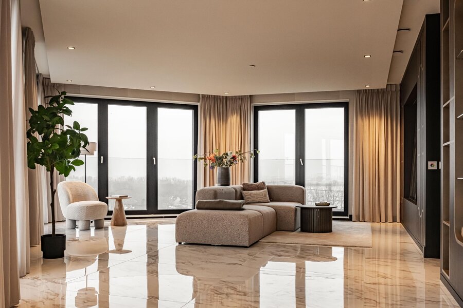 - De gehele woning is luxe afgewerkt en voorzien mooi lichtplan inclusief maatwerk, met oog voor detail afgewerkt. Hierbij is gebruik gemaakt van kwalitatief uitzonderlijk hoogwaardige materialen.