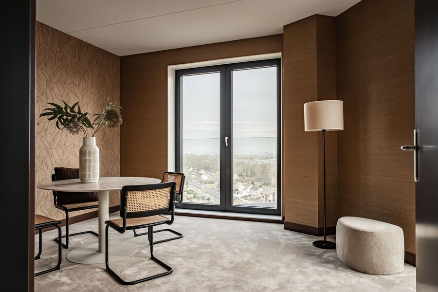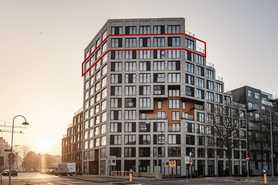 Het hoogtepunt van dit penthouse is het riante dakterras, waar zicht is op de fraai aangelegde binnentuin, er heerlijk gerelaxt kan worden in de zon of er genoten kan worden van het adembenemende uitzicht. Of het nu gaat om een ontspannen avond met vrienden of een intiem diner onder de sterren, het dakterras biedt de perfecte setting voor onvergetelijke momenten. Tevens is er nog een loggia.