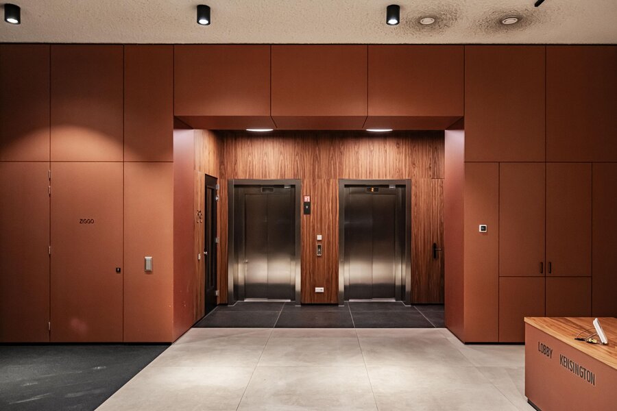Bij binnenkomst in de representatieve hal met ontvangstbalie met conciërge is er exclusieve (beveiligde) toegang middels de liftinstallaties naar de bovenste 2 verdiepingen.