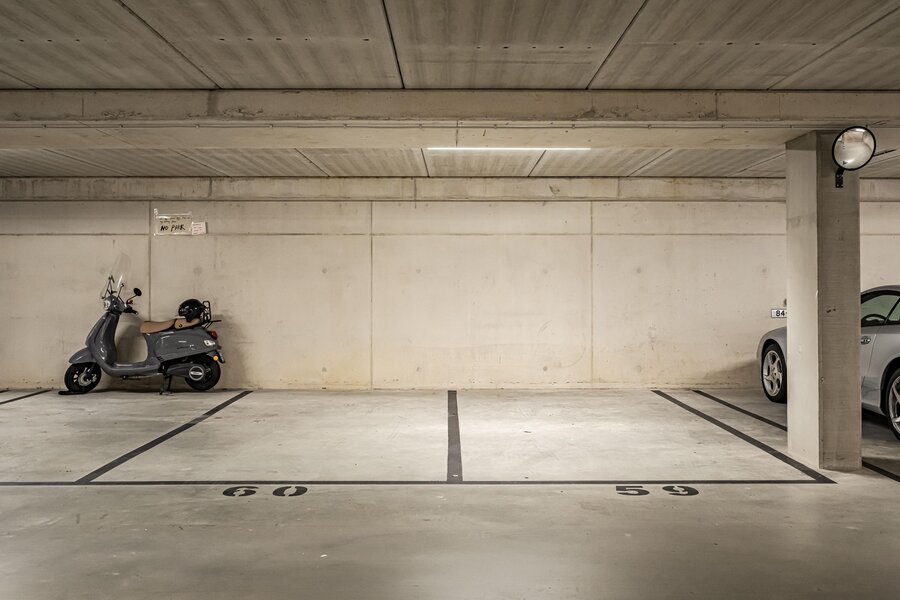 - 2 parkeerplaatsen in de parkeerkelder (nr. 59 en nr. 60) à € 55.000,- p/stuk