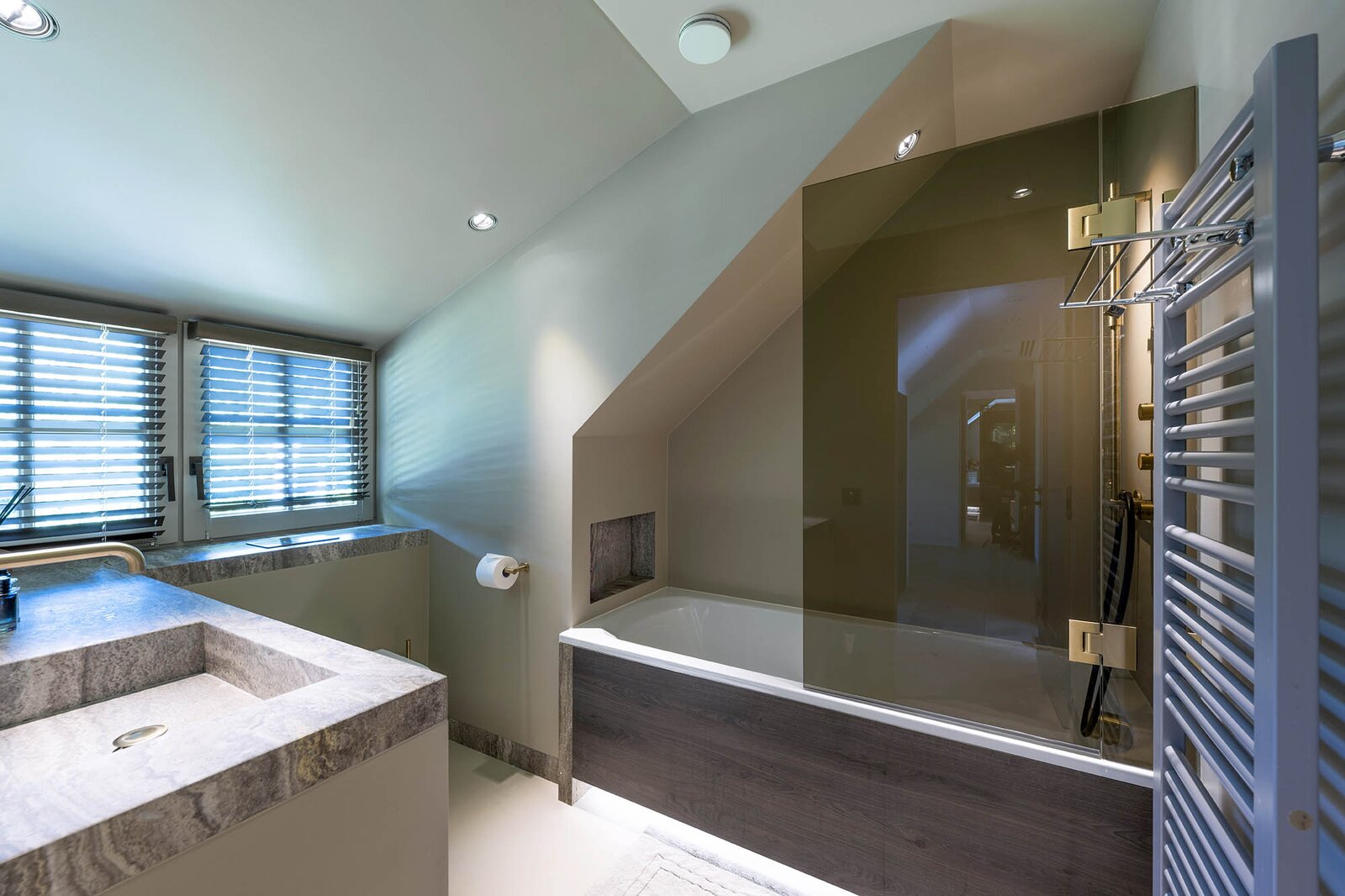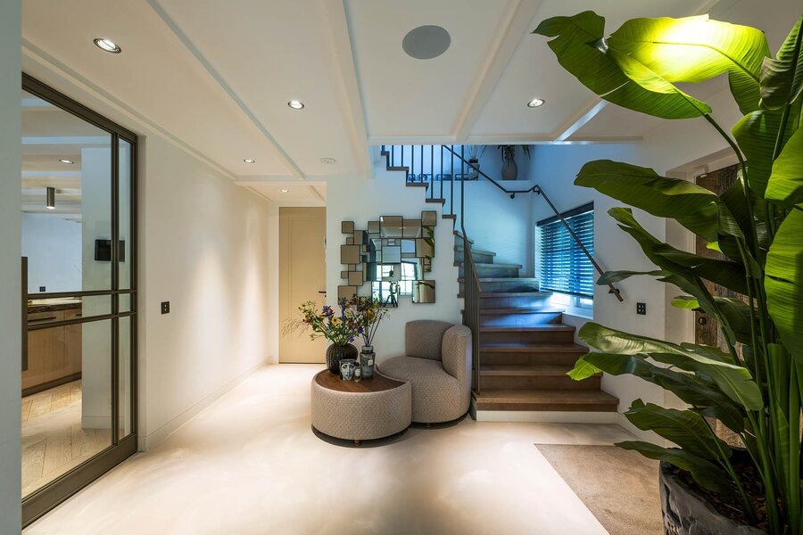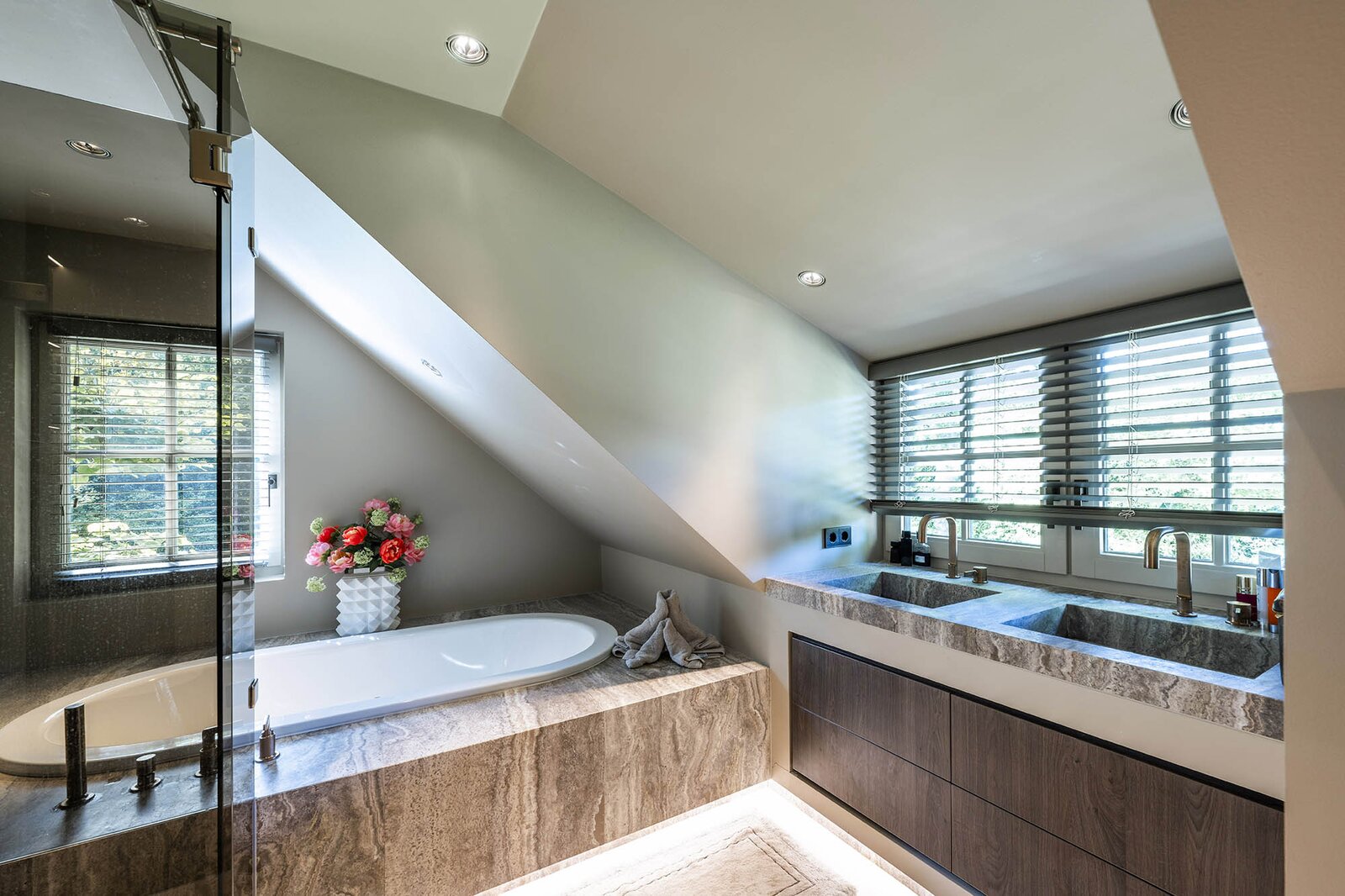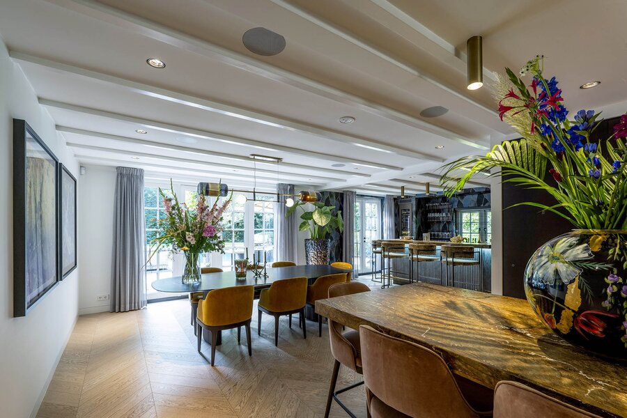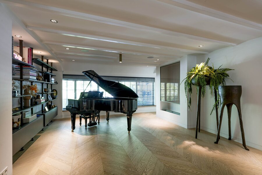 Alle materialen spreken dezelfde taal: maatwerk, natuurlijke luxe en een ongekend oog voor detail. Van de Hongaarse punt eiken vloeren tot Lutron-domotica, 24/7 camerabewaking en hoogwaardige klimaatregulatie met warmtepomp en airconditioning: dit is comfort op het hoogste niveau.