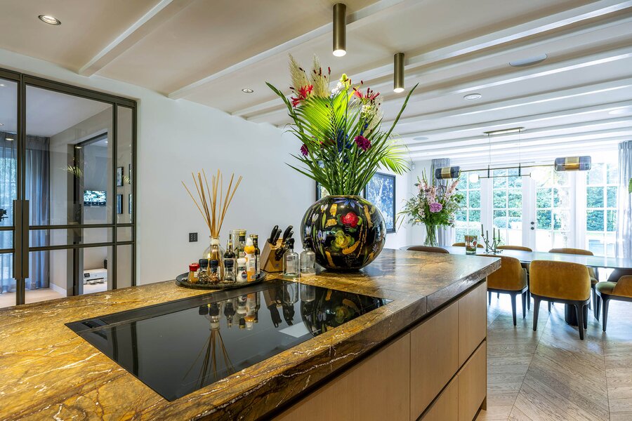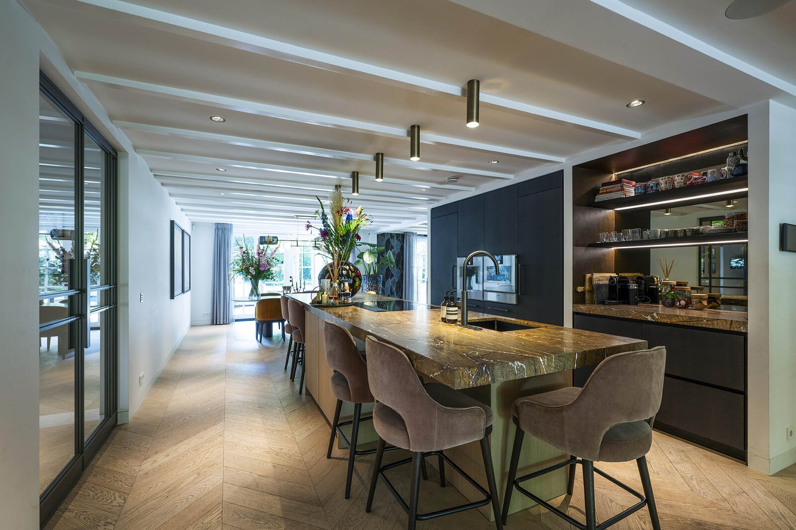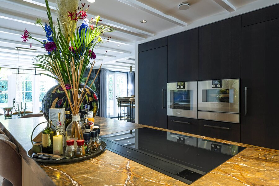 - Luxe woonkeuken (Gaggenau), marmer en maatwerkafwerking
