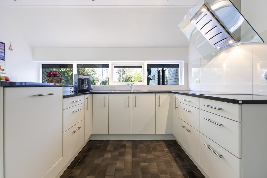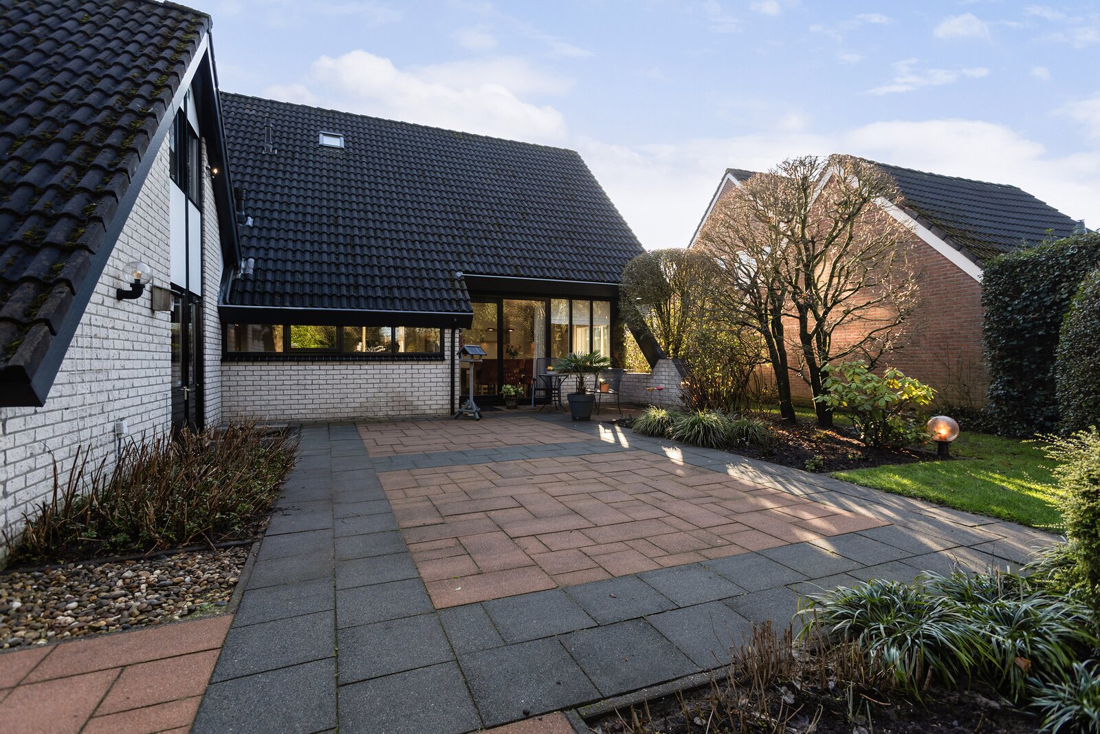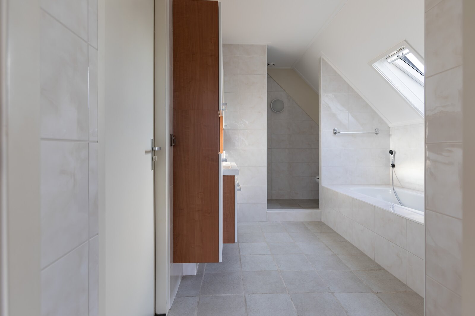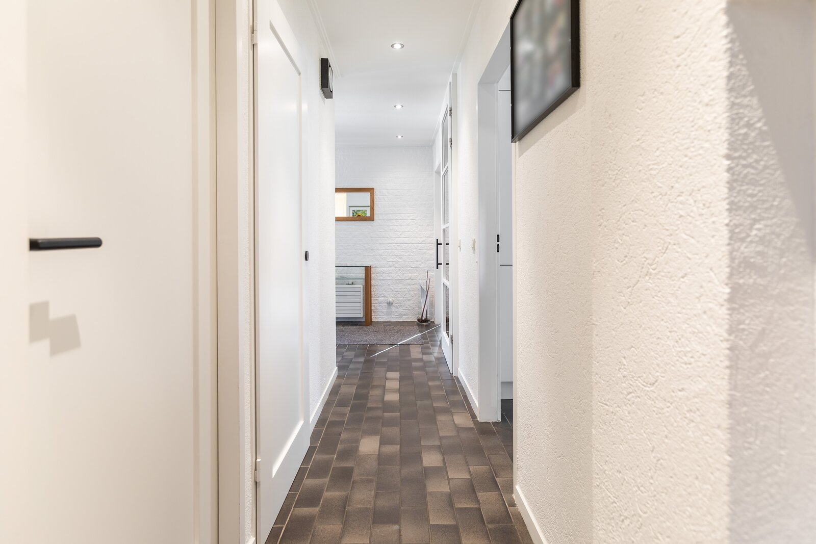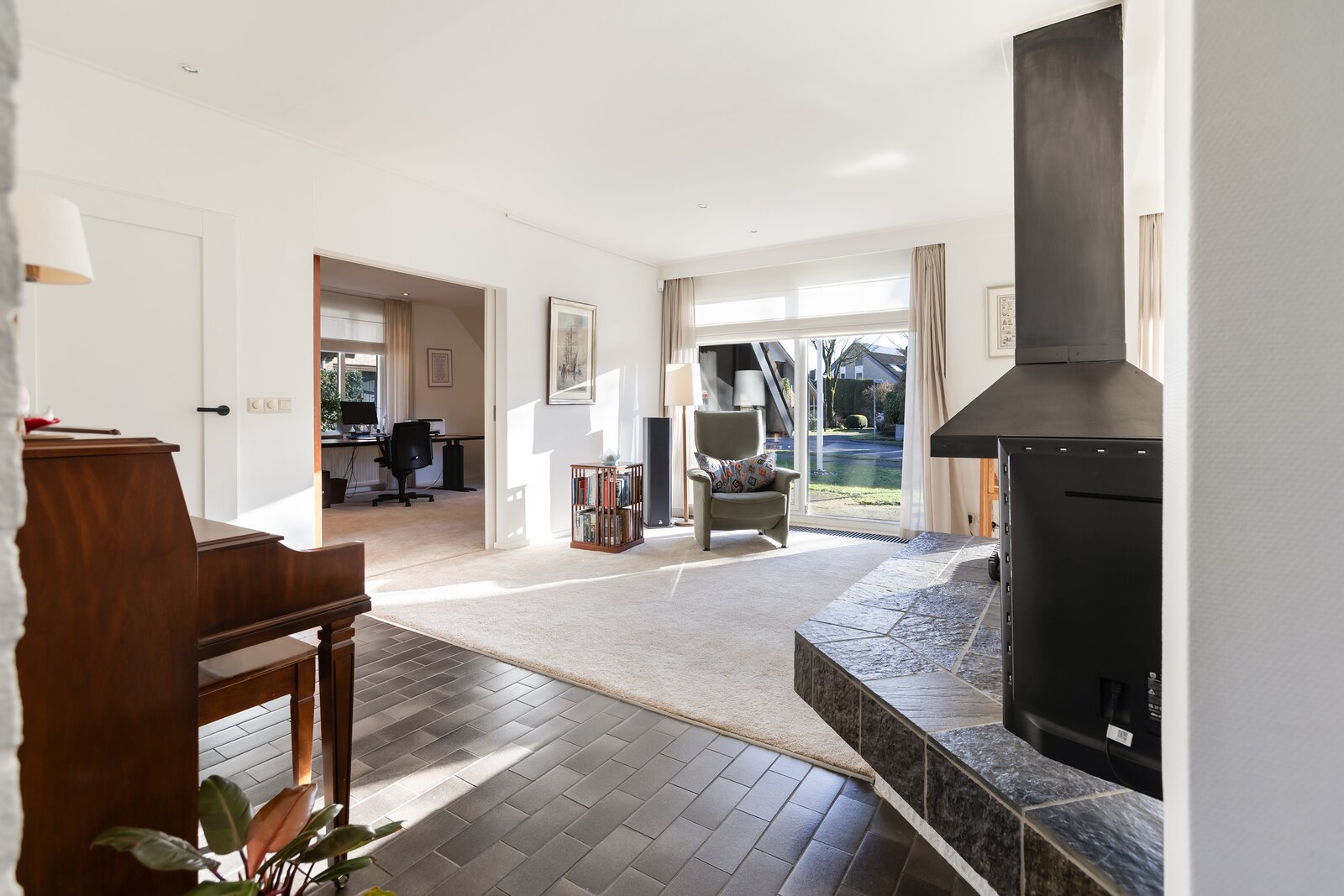 U betreedt de woning via een representatieve hal met garderobe en een modern toilet. Vanuit hier heeft u toegang tot de master bedroom op de begane grond, compleet met vaste kastenwand en een lichte en-suite badkamer. De praktische bijkeuken met wasruimte biedt doorgang naar de aangebouwde in spouw gebouwde garage, die verrast met een grote zolder op stahoogte, bereikbaar via een vaste trap. Het hart van het huis is de prachtige living met een sfeervolle centrale haard. Aan de voorzijde vindt u een separate speel- of werkkamer, terwijl de tuingerichte woonkeuken met diverse inbouwapparatuur en een schuifpui uitnodigt tot lange avonden tafelen.