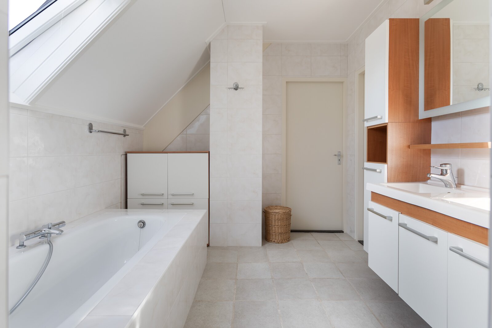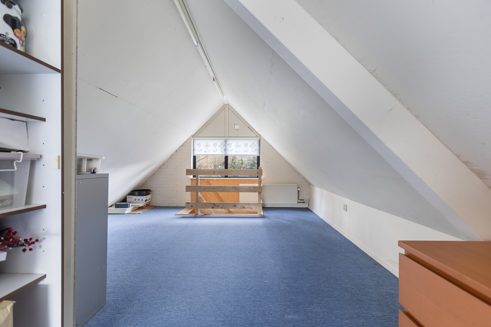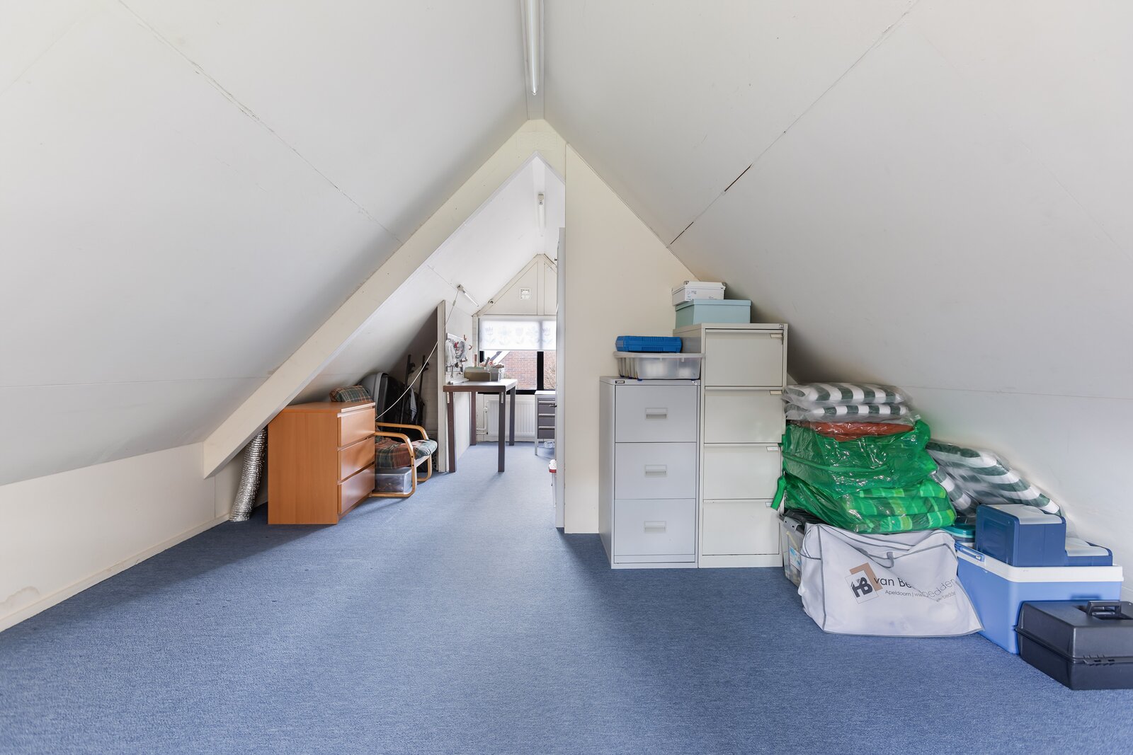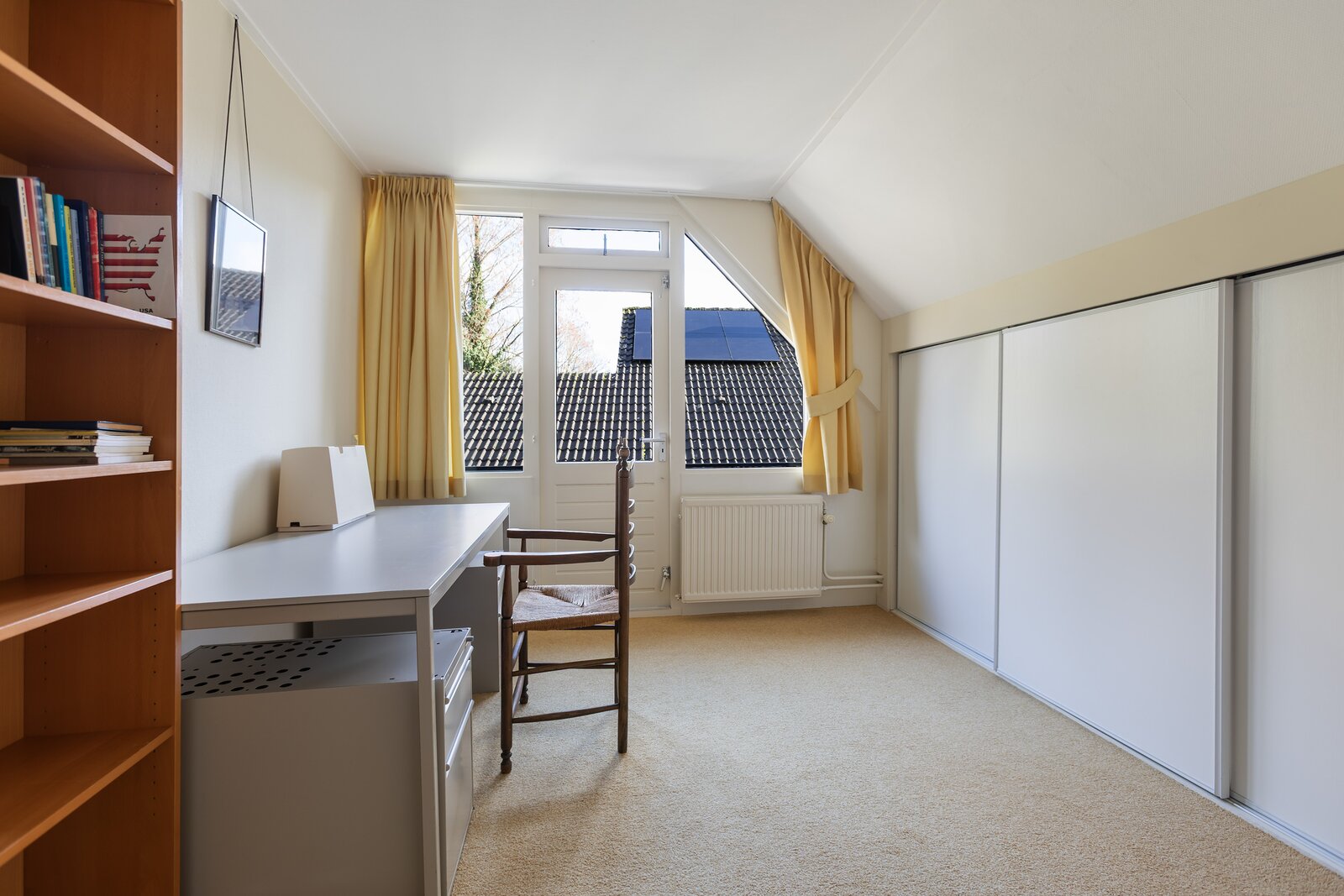U betreedt de woning via een representatieve hal met garderobe en een modern toilet. Vanuit hier heeft u toegang tot de master bedroom op de begane grond, compleet met vaste kastenwand en een lichte en-suite badkamer. De praktische bijkeuken met wasruimte biedt doorgang naar de aangebouwde in spouw gebouwde garage, die verrast met een grote zolder op stahoogte, bereikbaar via een vaste trap. Het hart van het huis is de prachtige living met een sfeervolle centrale haard. Aan de voorzijde vindt u een separate speel- of werkkamer, terwijl de tuingerichte woonkeuken met diverse inbouwapparatuur en een schuifpui uitnodigt tot lange avonden tafelen.