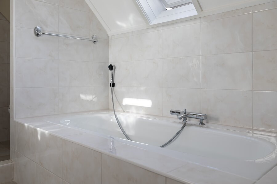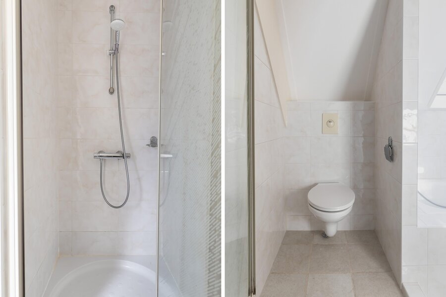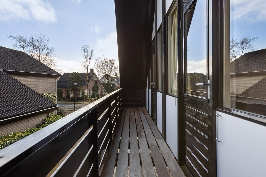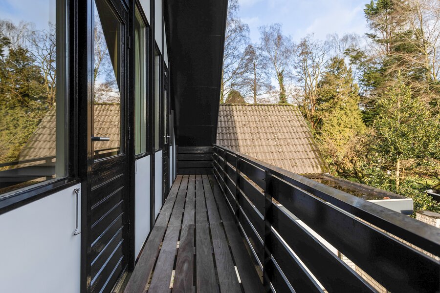 De overloop biedt toegang tot nog eens vier ruime slaapkamers, elk met als uniek pluspunt toegang tot een balkon. De lichte, geheel betegelde badkamer is compleet uitgerust met een ligbad, separate douche, wasmeubel en een tweede wandcloset.