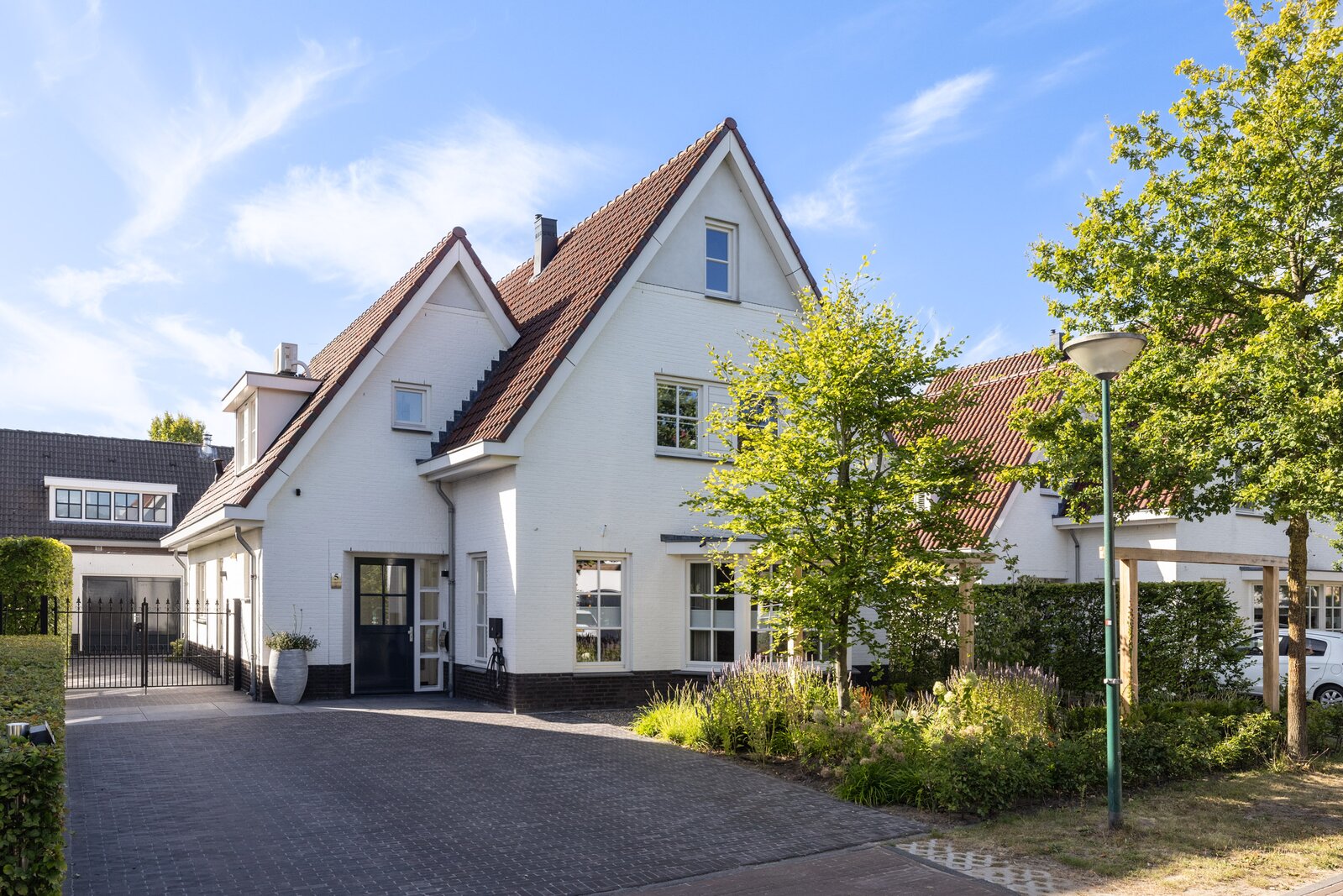 Aan een intiem groen hofje in een exclusieve villawijk staat deze charmante villa in Engelse stijl – een woning met karakter, allure en een verfijnde uitstraling. De Loonwerker 5 maakt deel uit van een besloten hof met slechts achttien onder architectuur ontworpen Cambridge-villa’s, waar rust, harmonie en esthetiek samenkomen.
