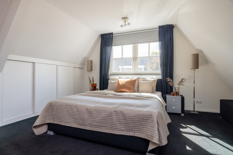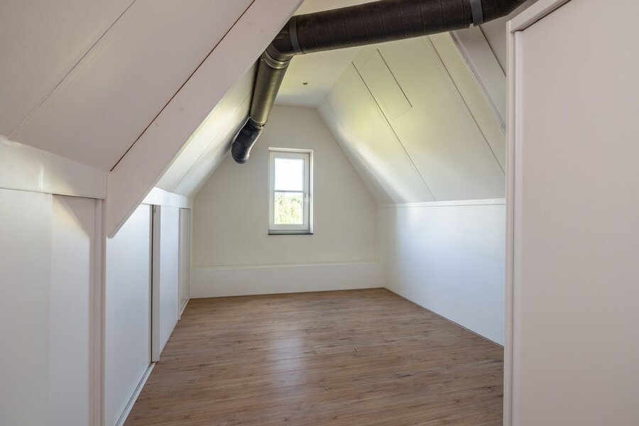 Via een vlizotrap bereik je de ruime bergzolder met extra opslagmogelijkheden achter de knieschotten en potentie voor een extra vijfde slaapkamer.