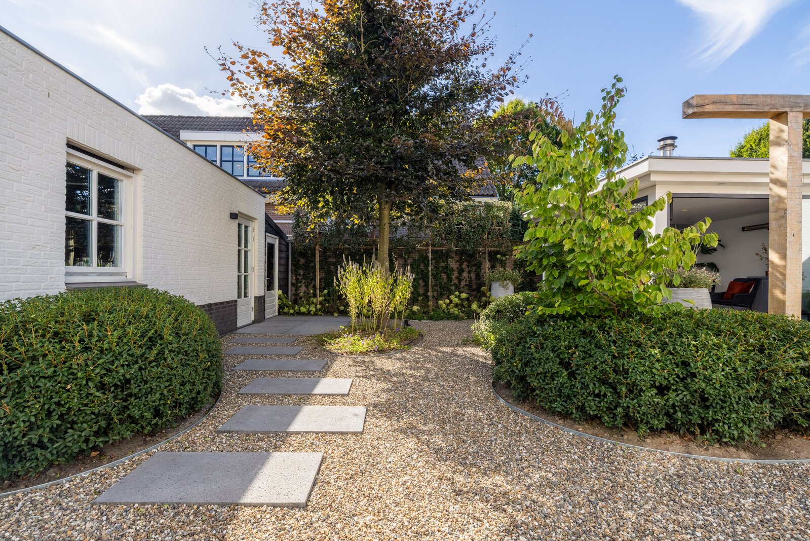Een plek om te vertragen, te luisteren naar vogels en ’s avonds te genieten van subtiele tuinverlichting.