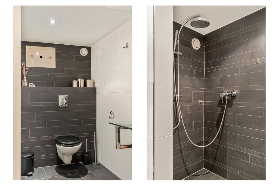 Also on the ground floor are a separate toilet and a modern second bathroom with walk-in shower and washbasin. The current layout provides the possibility to create an additional bedroom or workspace, making the living area even more functional.
