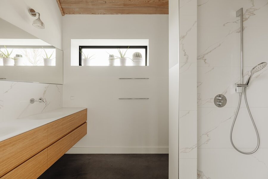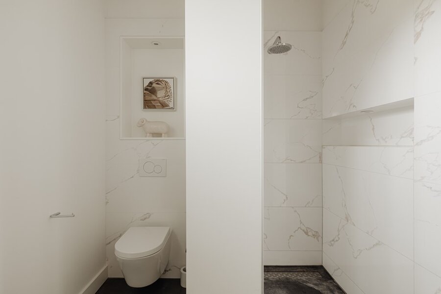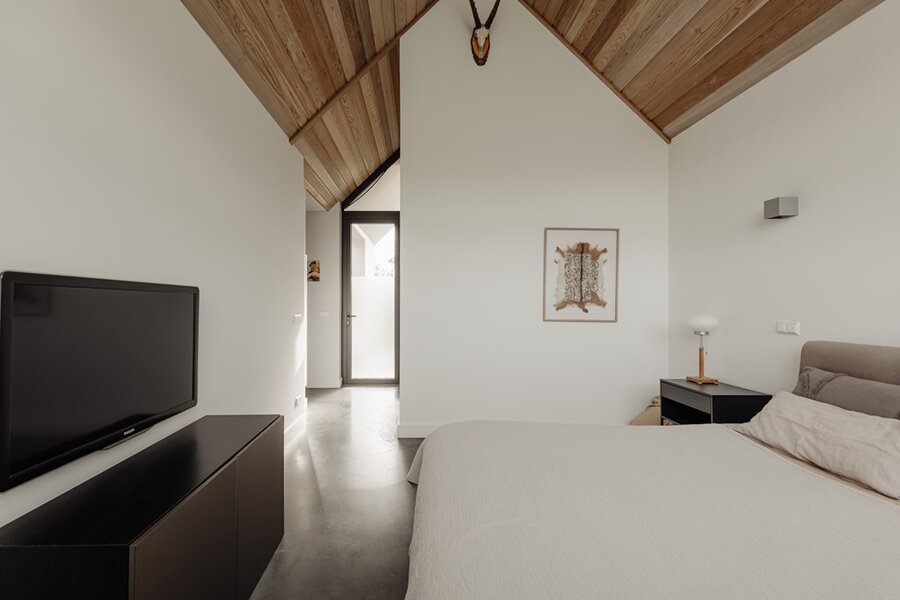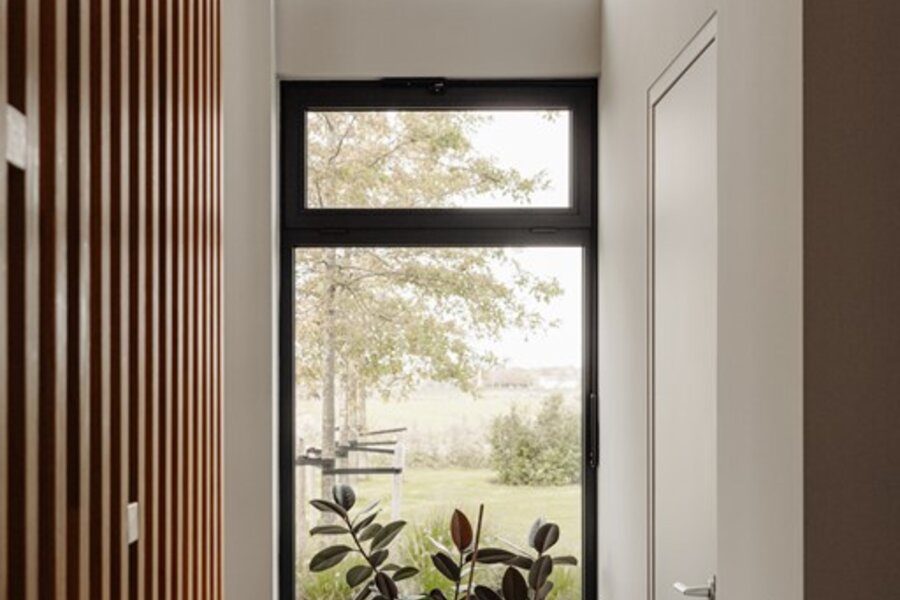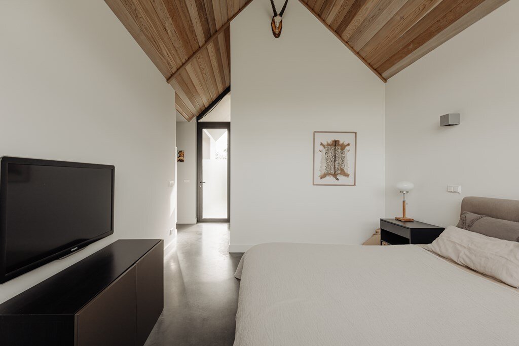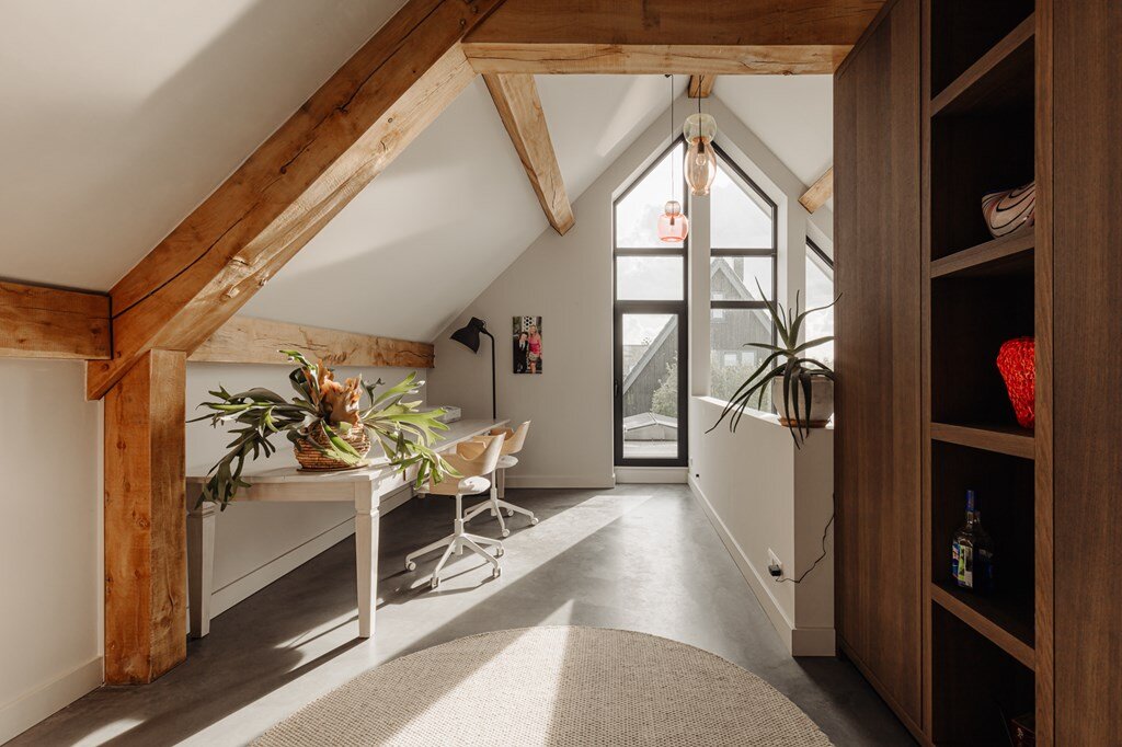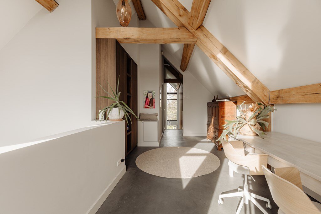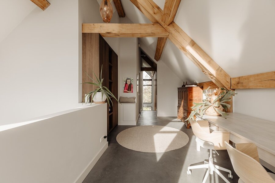 Op de eerste verdieping brengt een lichte vide hoogte en adem in het huis. Hier bevinden zich de hoofd slaapkamer met luxe badkamer en een multifunctionele derde kamer – ideaal als thuiskantoor, atelier of extra slaapkamer.