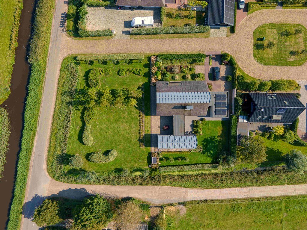 Met een royaal perceel van 2.225 m² biedt de tuin volop ruimte voor ontspanning en buitenleven, met groen omzoomde zitjes en een inspirerend uitzicht over het weidelandschap.