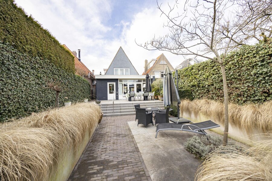 De fraai aangelegde achtertuin is gelegen op het oosten en beschikt over meerdere zitgedeeltes. Door de speelse hoogteverschillen komt de tuin bijzonder goed tot zijn recht. Daarnaast is er een achterom aanwezig.