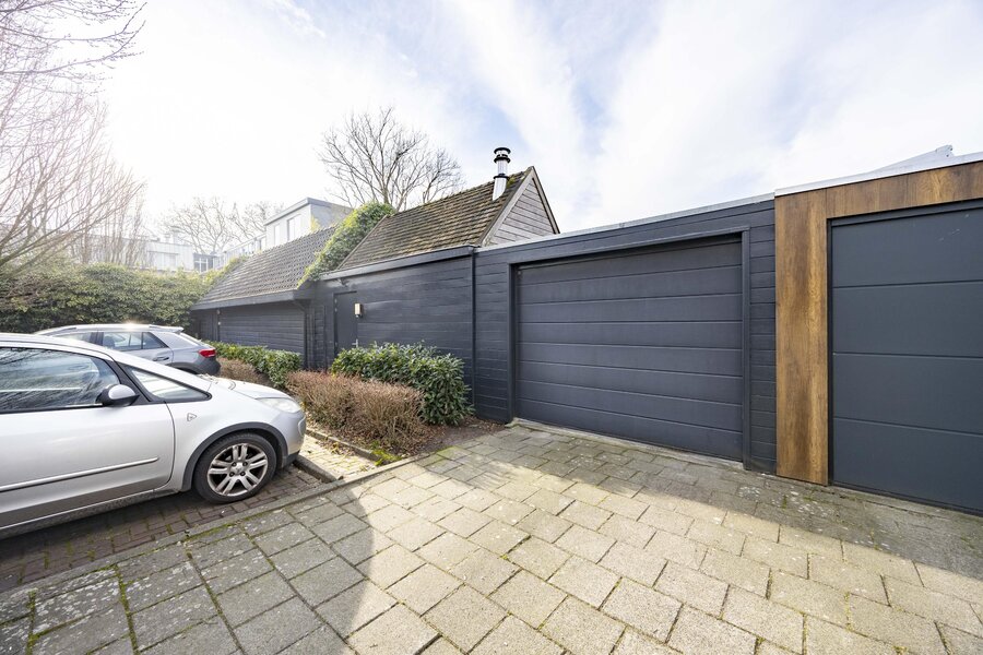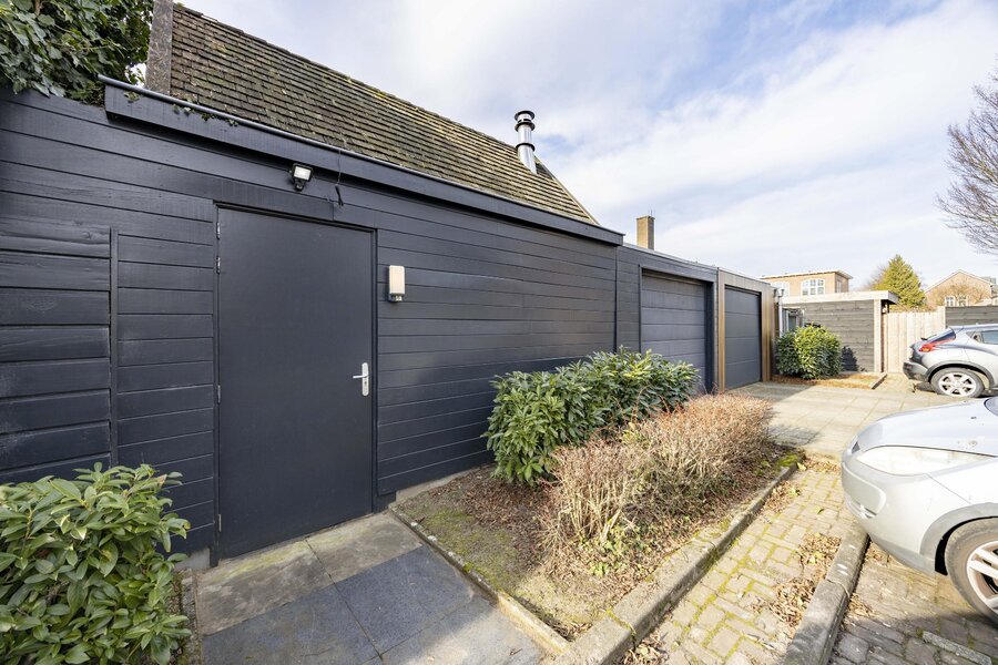 In de tuin bevindt zich een afsluitbaar tuinhuis met glazen schuifwanden, voorzien van een houtkachel en elektra, waardoor deze ruimte het hele jaar door te gebruiken is. Verder beschikt het perceel over een garage met elektrische roldeur en mogelijkheid tot laden van een voertuig. Op het dak van de garage zijn 18 zonnepanelen geplaatst.