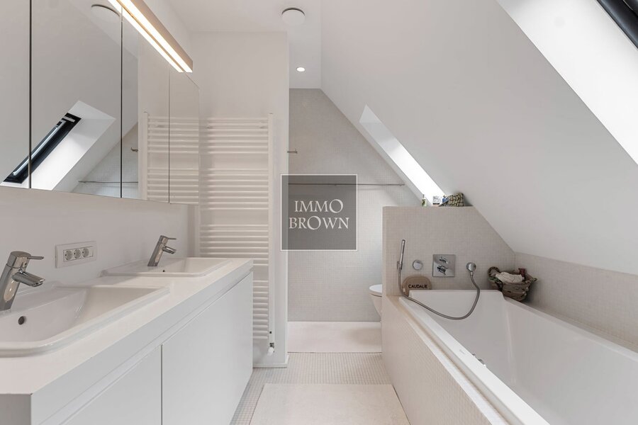 Bovenverdieping: 3 bijzonder grote slaapkamers met ongelooflijk mooi verzicht. 2 Volledig geïnstalleerde badkamers met dubbele lavabo's, bad, douche en toiletten (Ph.Stark).
