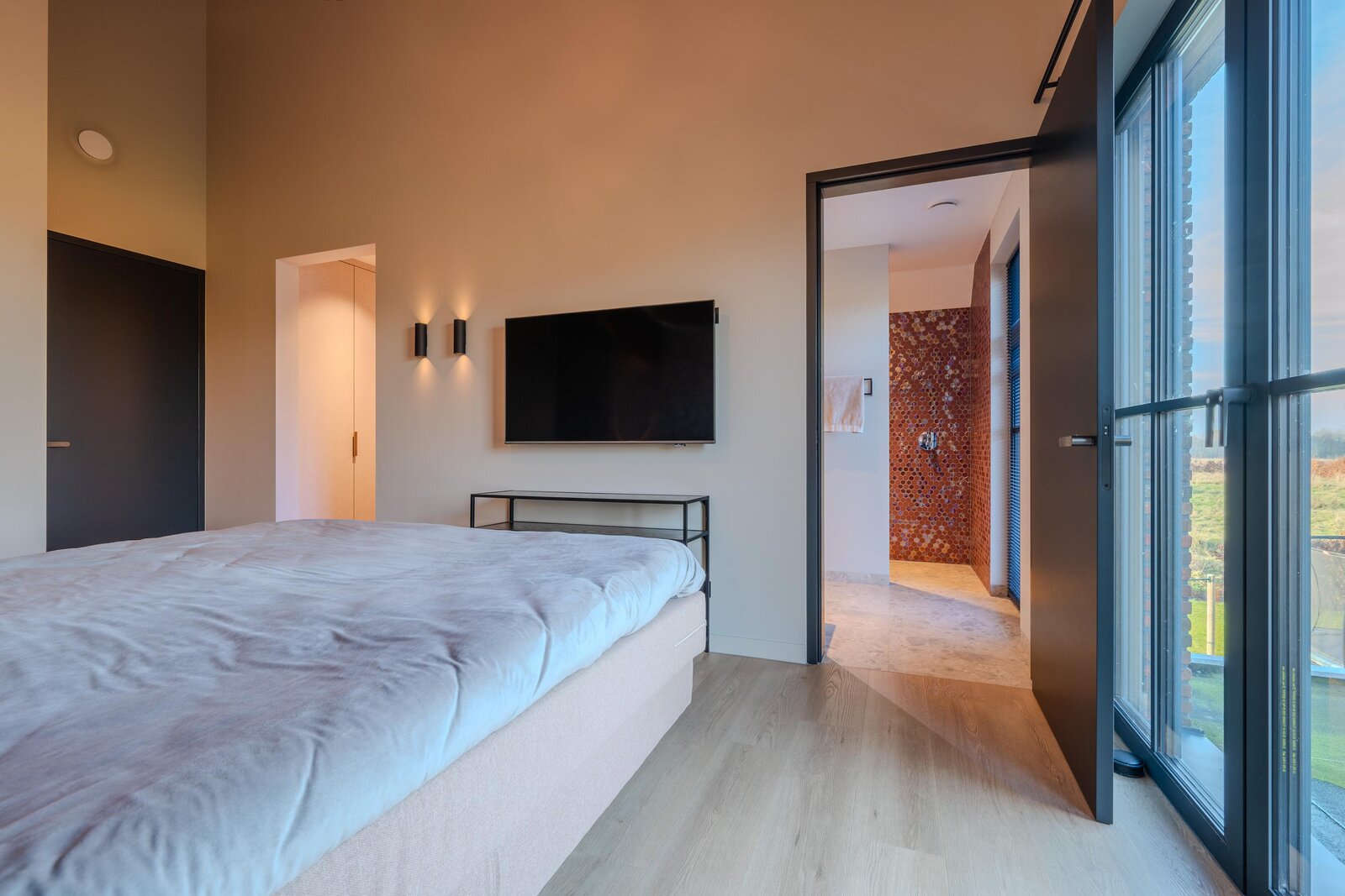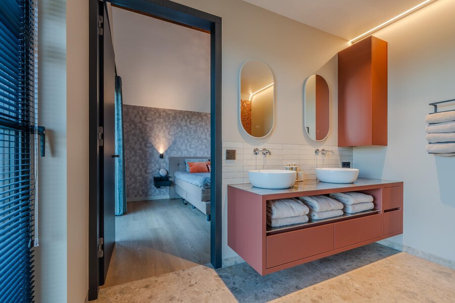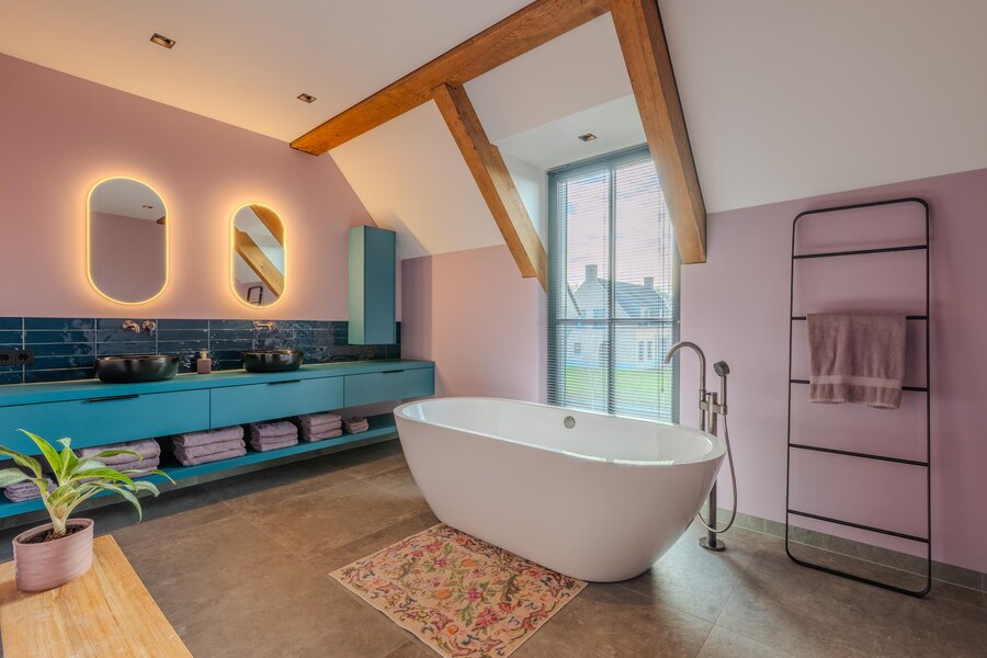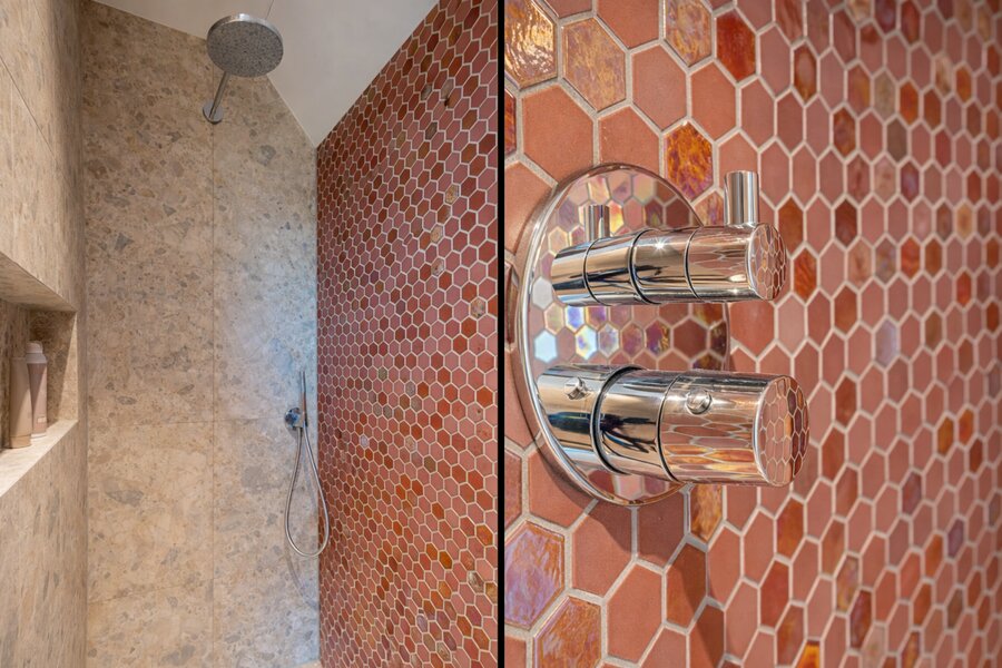 De badkamers — waarvan één ensuite bij de master-bedroom — zijn stijlvol en hoogwaardig afgewerkt, met uniek tegelwerk, luxe sanitair en een vrijstaand ligbad. Hier voelt elke dag als een hotelervaring. En dan is er nog de ruime inloopkast, perfect voor al je kleding en schoenen.
