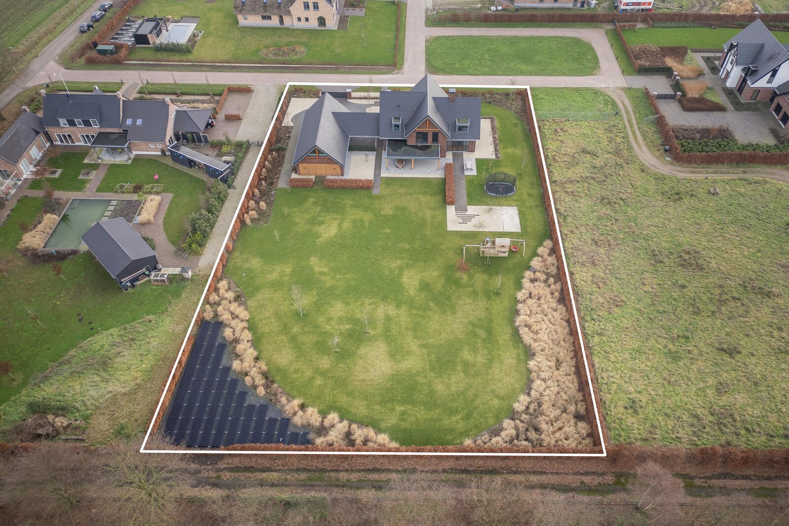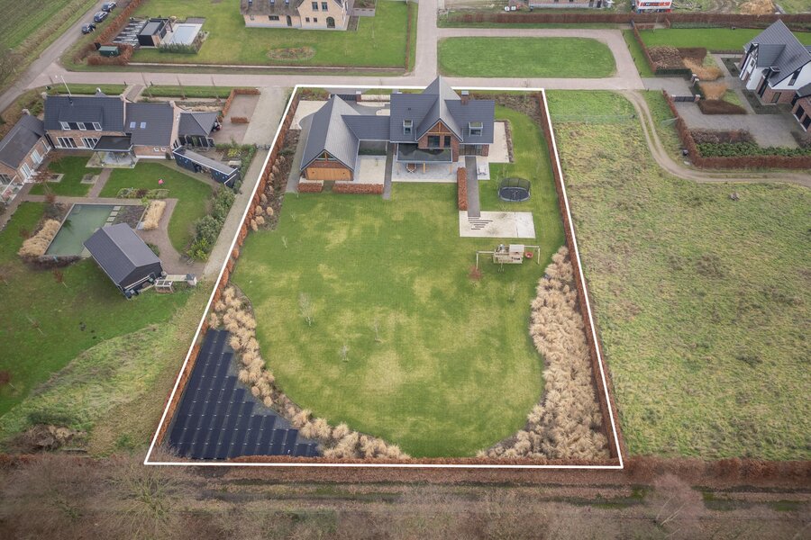Een professioneel aangelegde tuin met veilige speelruimte, voorbereidingen voor een buitenzwembad en een volledige beregeningsinstallatie, direct grenzend aan natuurgebied. Vrij wonen met maximale privacy, terwijl dagelijkse voorzieningen en uitvalswegen uitstekend bereikbaar blijven.