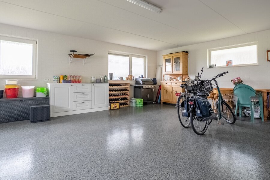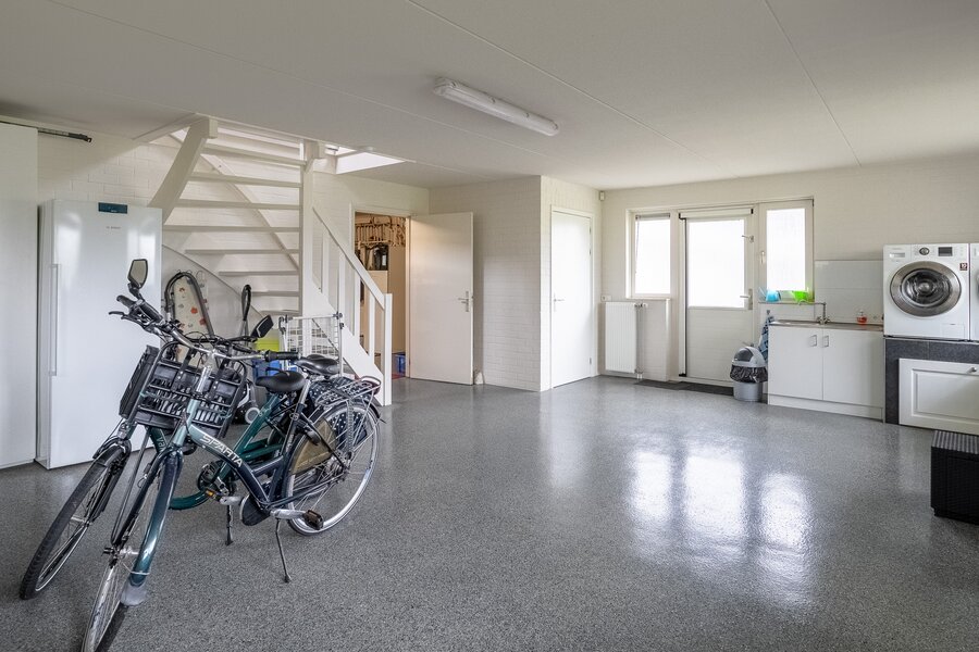 De royale woonkeuken met schiereiland is het hart van het huis: een perfecte plek voor gezellige diners en lange avonden tafelen. Aansluitend bevindt zich een praktische en ruime bijkeuken met volop bergruimte. Achter de bijkeuken en dubbele garage is een grote hobbyruimte met eigen toilet gelegen. De woning is levensloopbestendig dankzij een slaapkamer en badkamer op de begane grond – ideaal voor gelijkvloers wonen of het ontvangen van gasten.