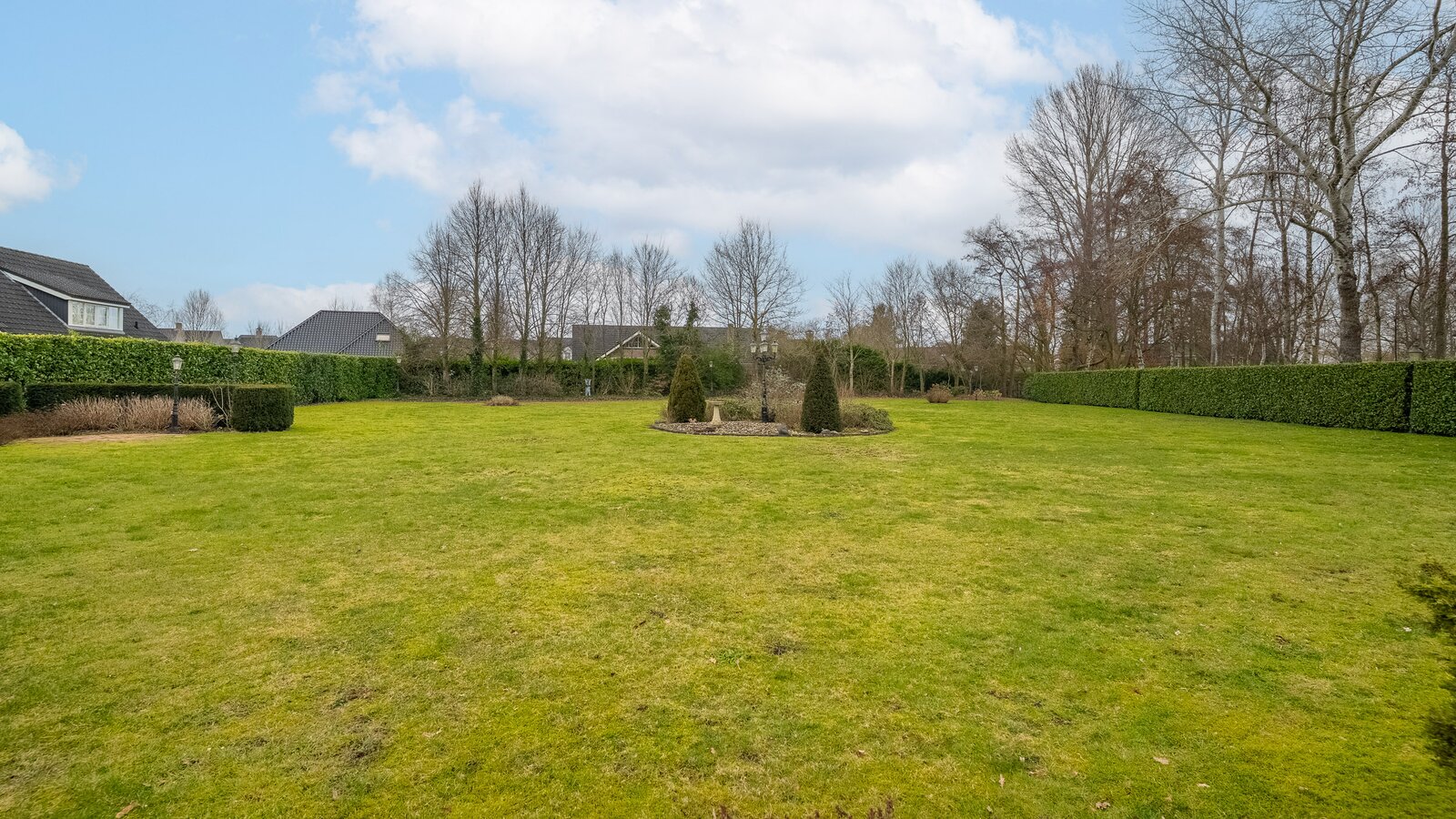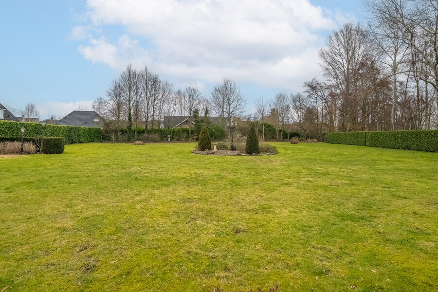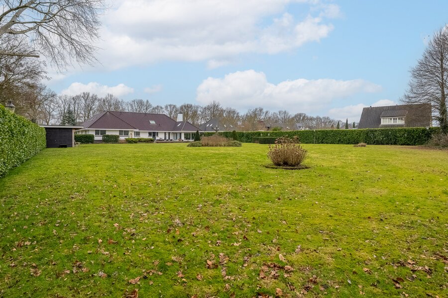 De royale achtertuin met zonnig terras biedt optimale privacy en beschikt over een overkapping en een houten berging. Het royale perceel van bijna 4.000 m² zorgt voor een oase van rust en ruimte – een zeldzame combinatie met de ligging aan het kanaal en het omliggende groen.