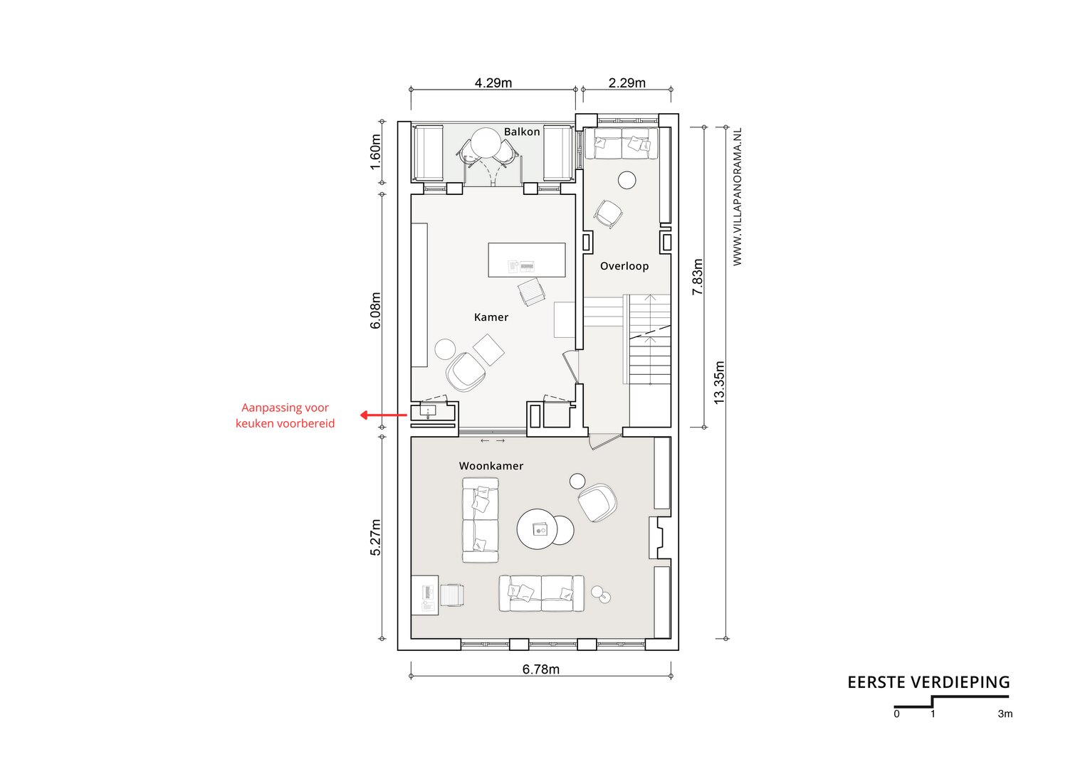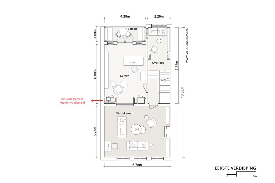 - Aansluitingen t.b.v. keuken ook aanwezig op de eerste verdieping